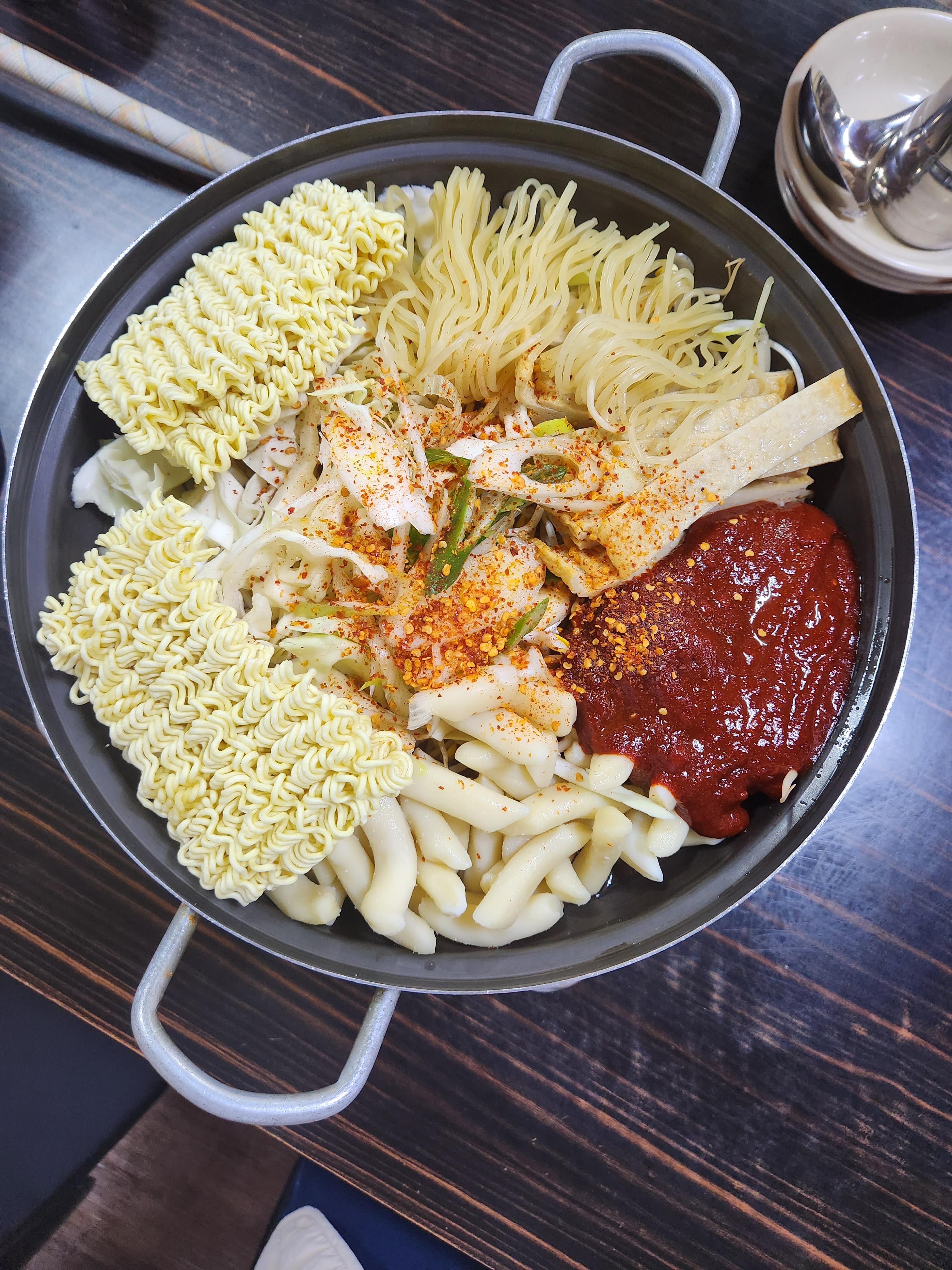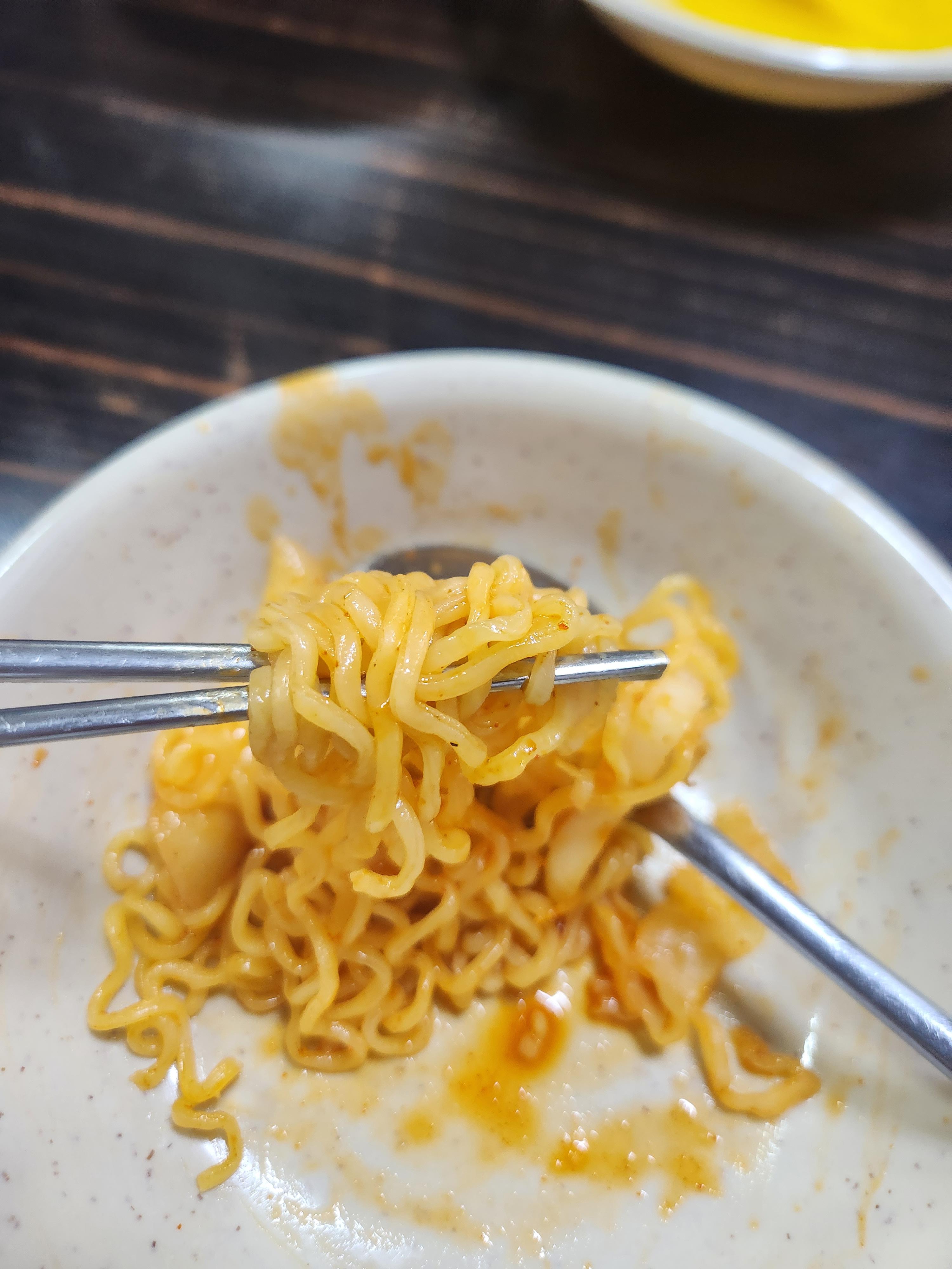즉떡에 라면과 단무지의 조합은