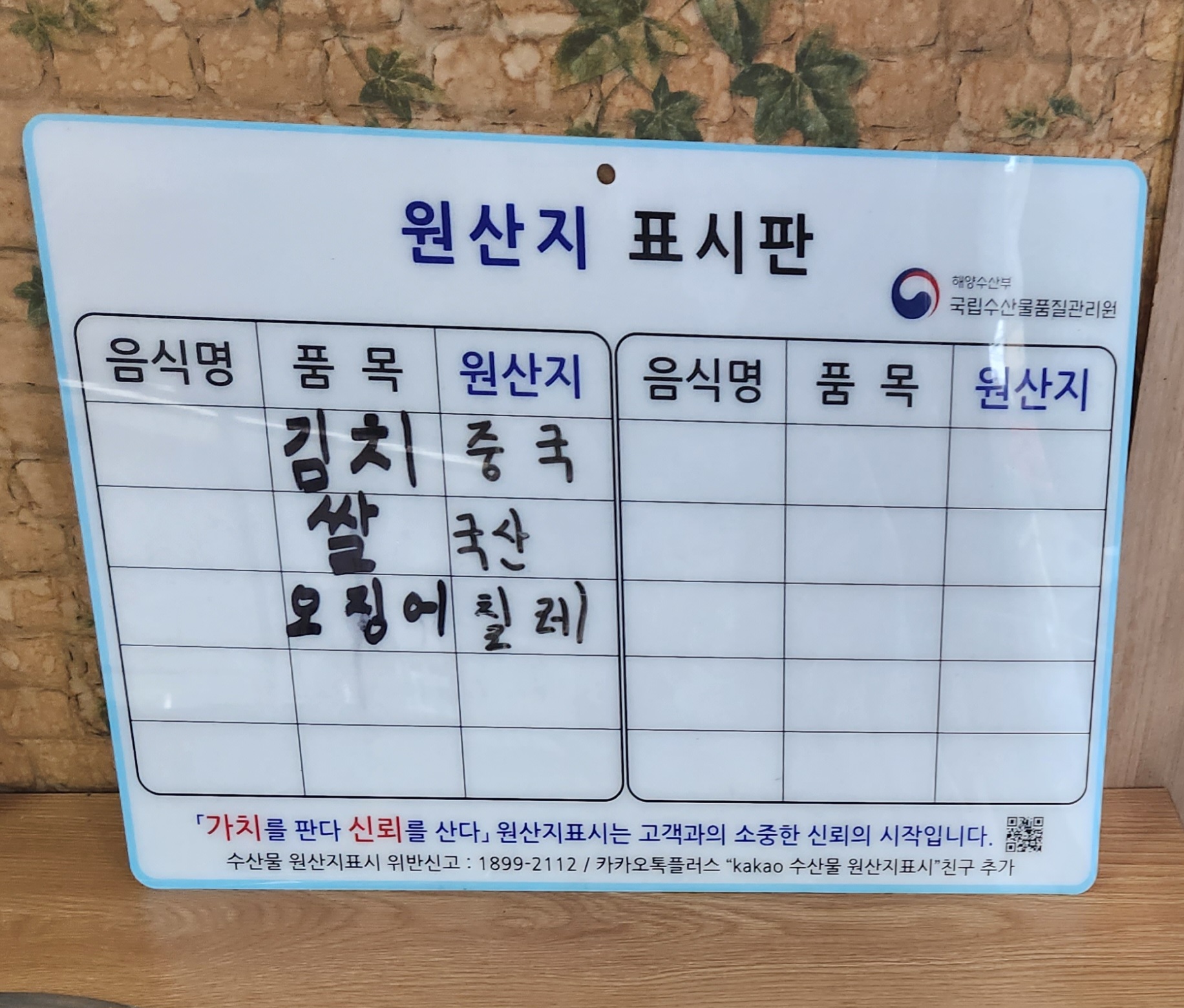 김치, 쌀, 오징어의 원산지도