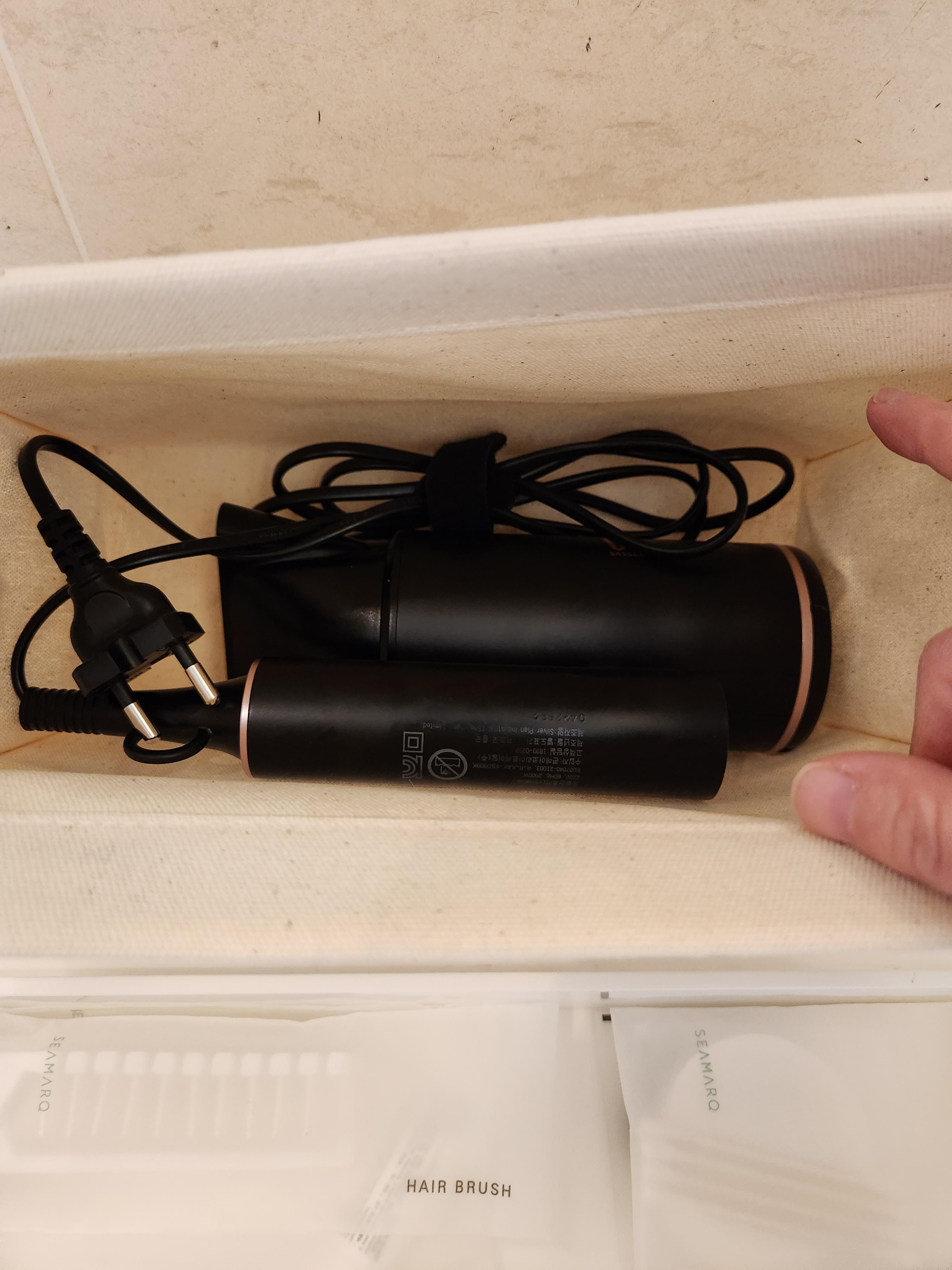 서랍에는 빨래건조대, 슬리퍼, 다리미가 구비되어 있다.