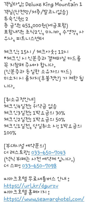 주소 : 강원 강릉시 해안로 406번 길 2 씨마크호텔