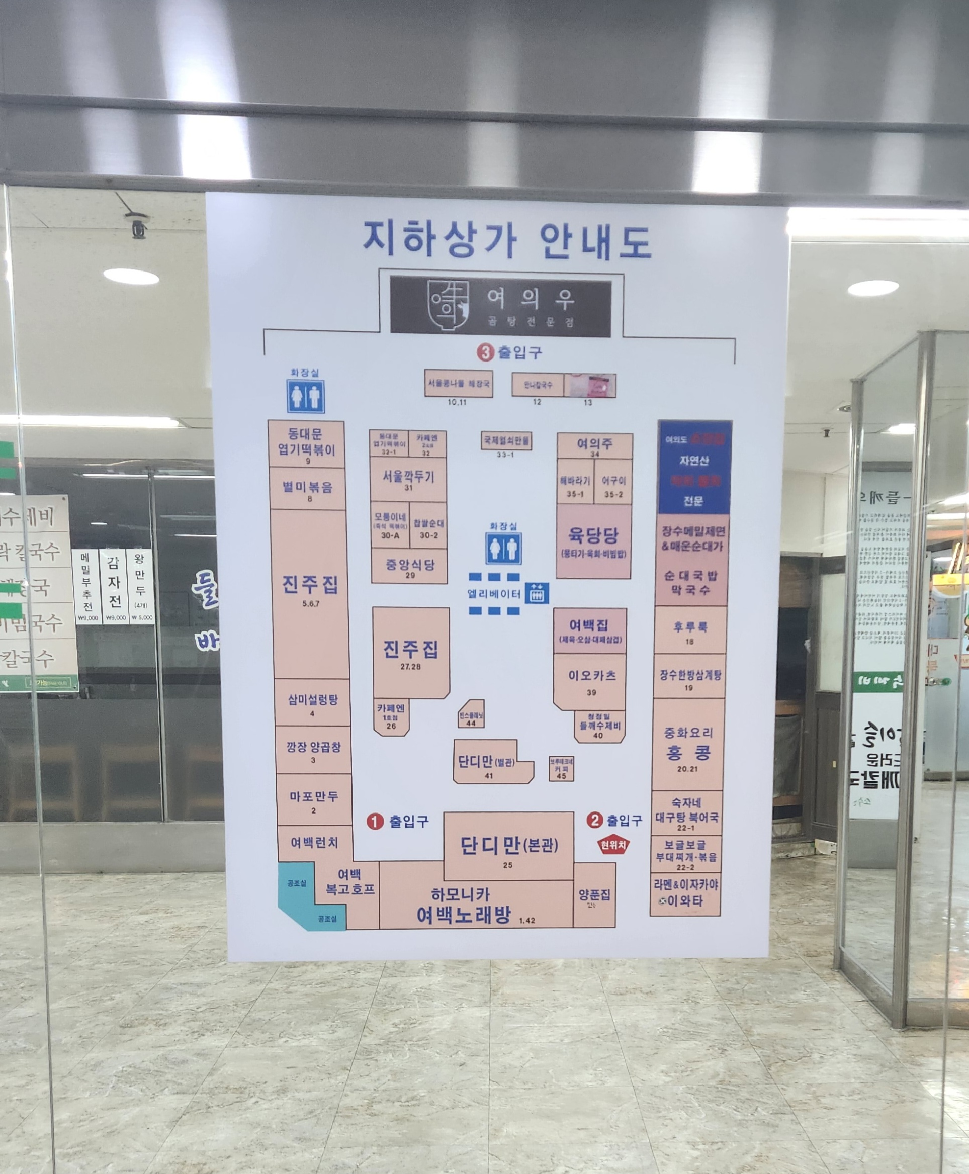 여의도백화점 지하 1층 전문식당가 간판이 보이는 곳으로