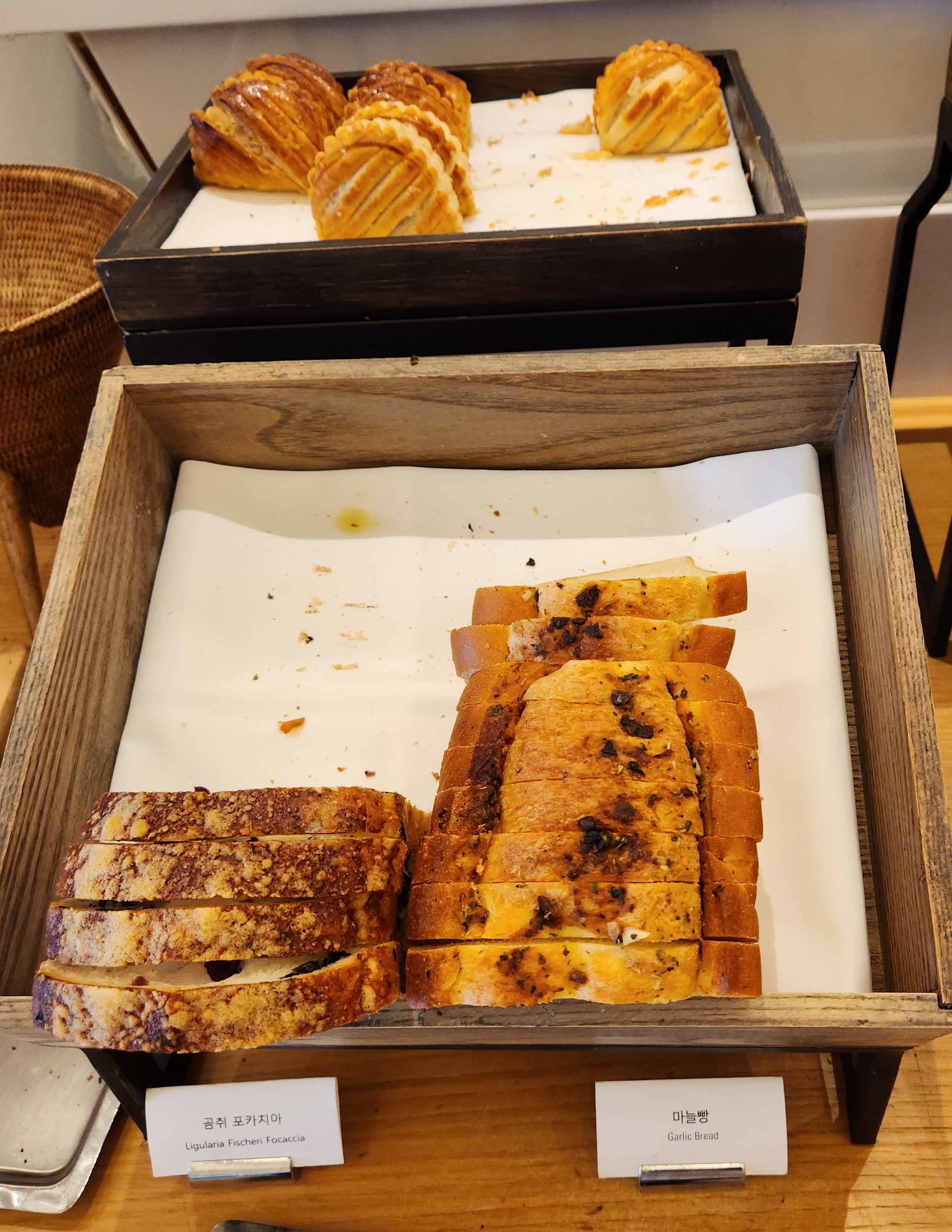 빵종류는 오징어먹물바케트, 황태바게트, 곰취포카치아, 마늘빵