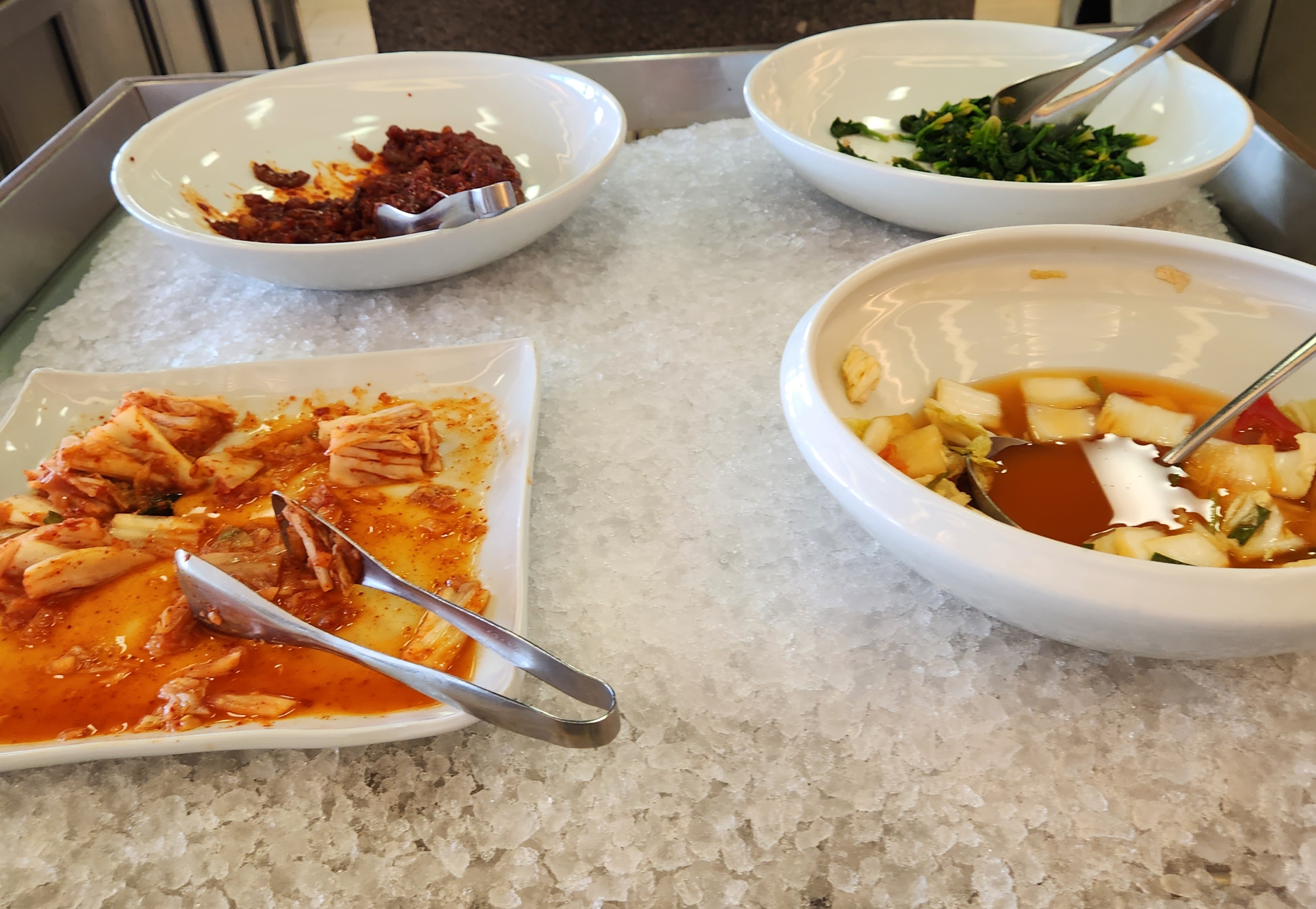 배추김치, 물김치, 시금치무침, 낙지젓갈은
