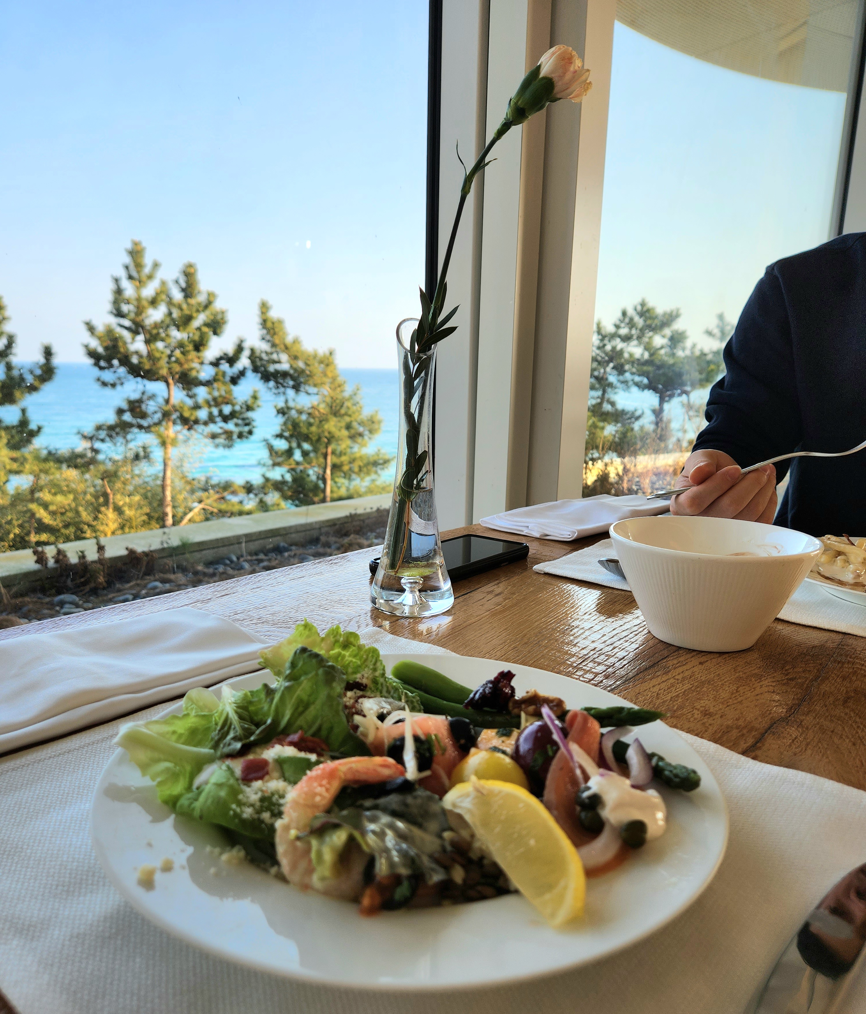 평일 숙박이라 운좋게 오션뷰 창가 바로 옆에서