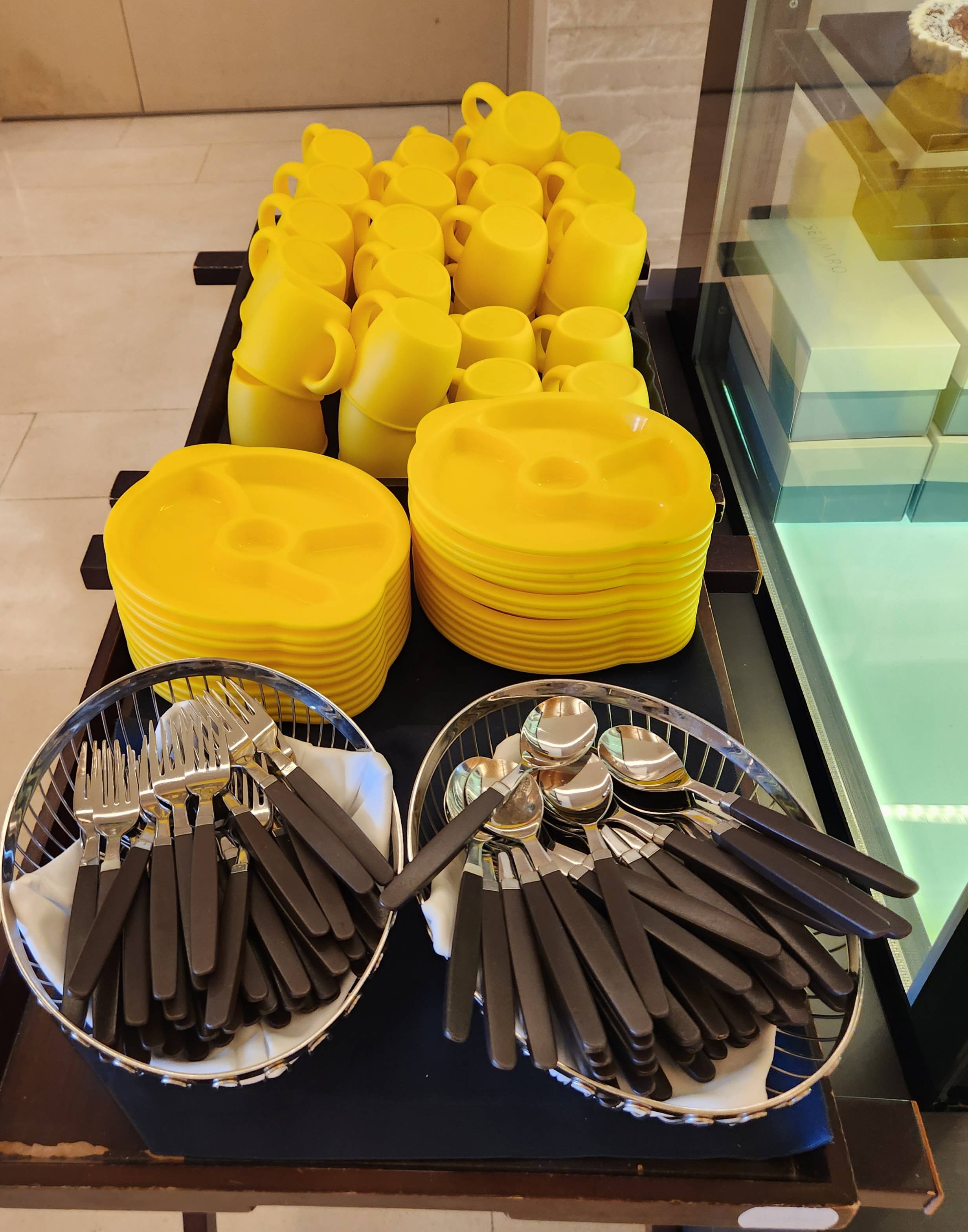 비치되어 있어 뷔페 음식을 담으러 갈때