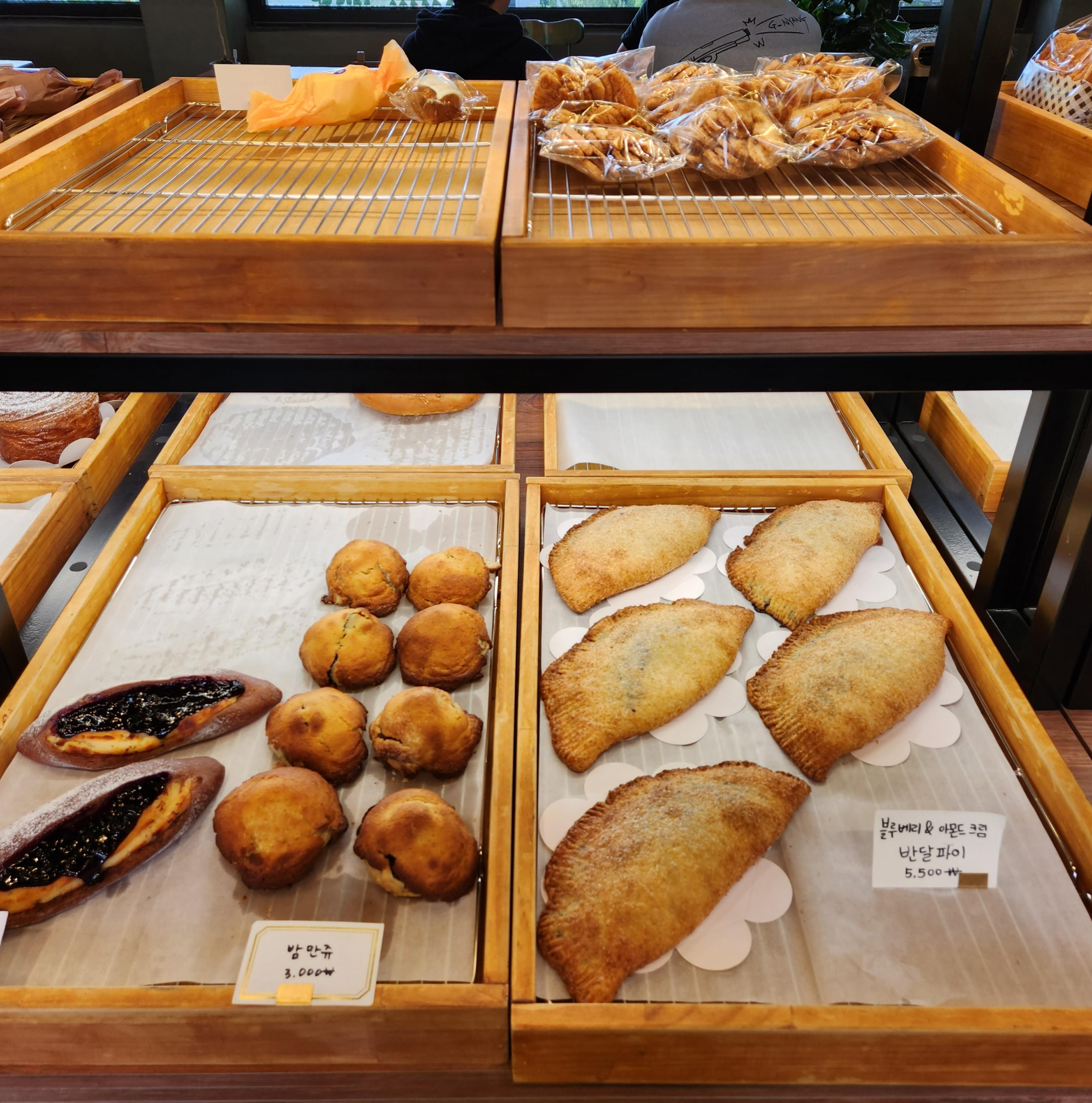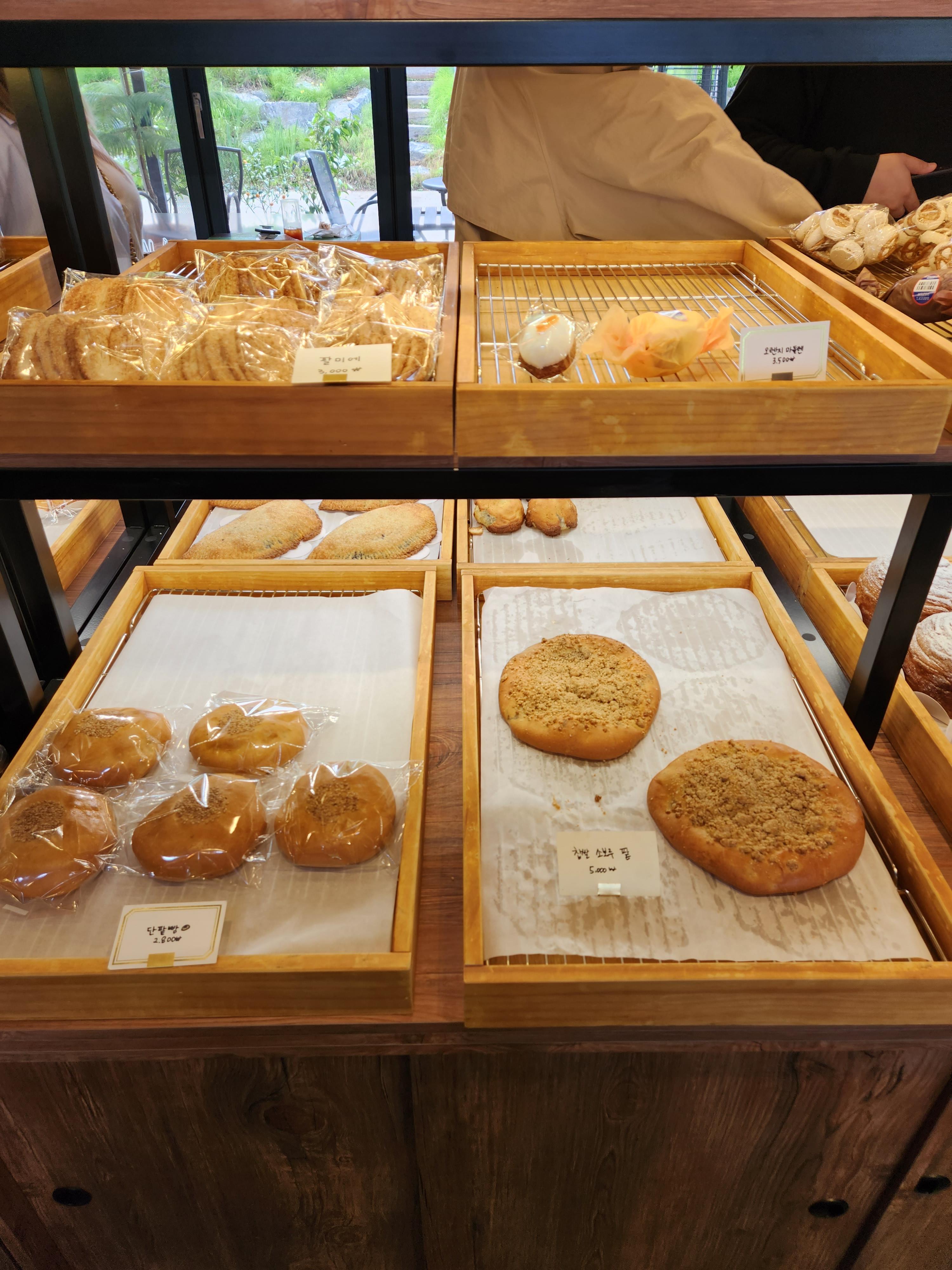 단팥류, 스콘류 다양한 빵이 진열되어 있었다.