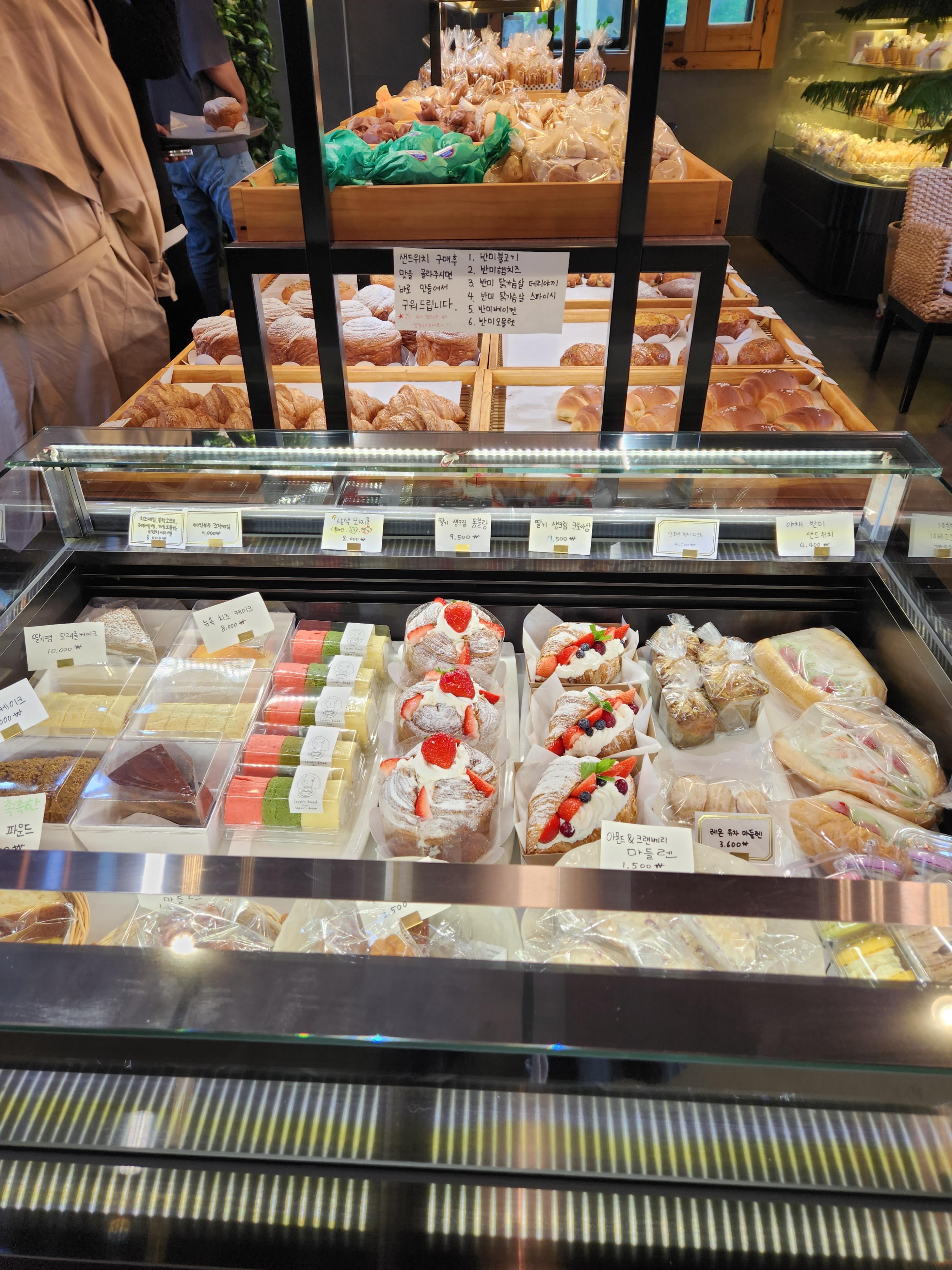 실온코너에는 다양한 페스츄리, 소금빵, 만쥬, 크림치즈,