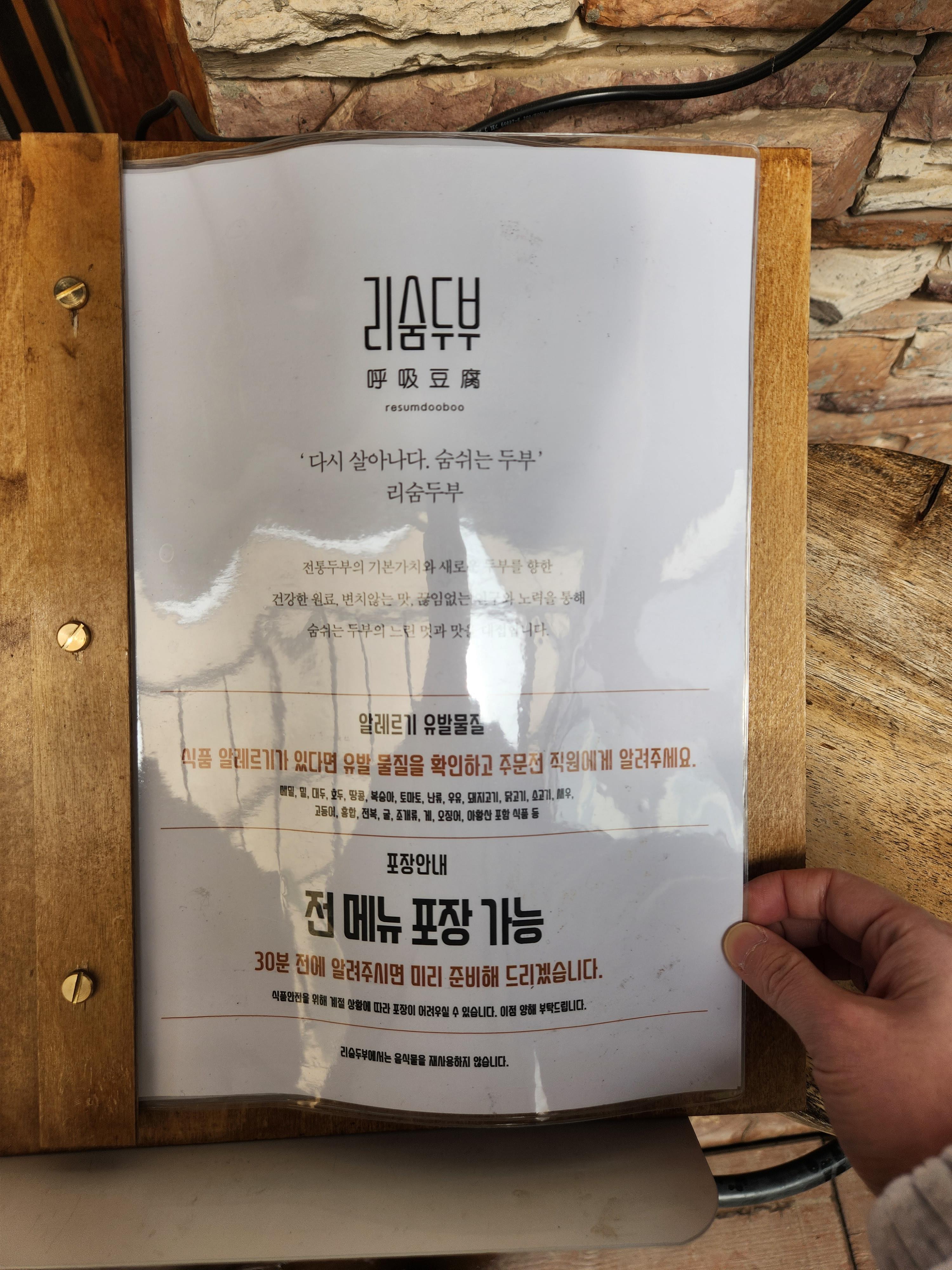 메뉴는 두브를 이용한 식사메뉴 콩탕, 검은콩초두부,