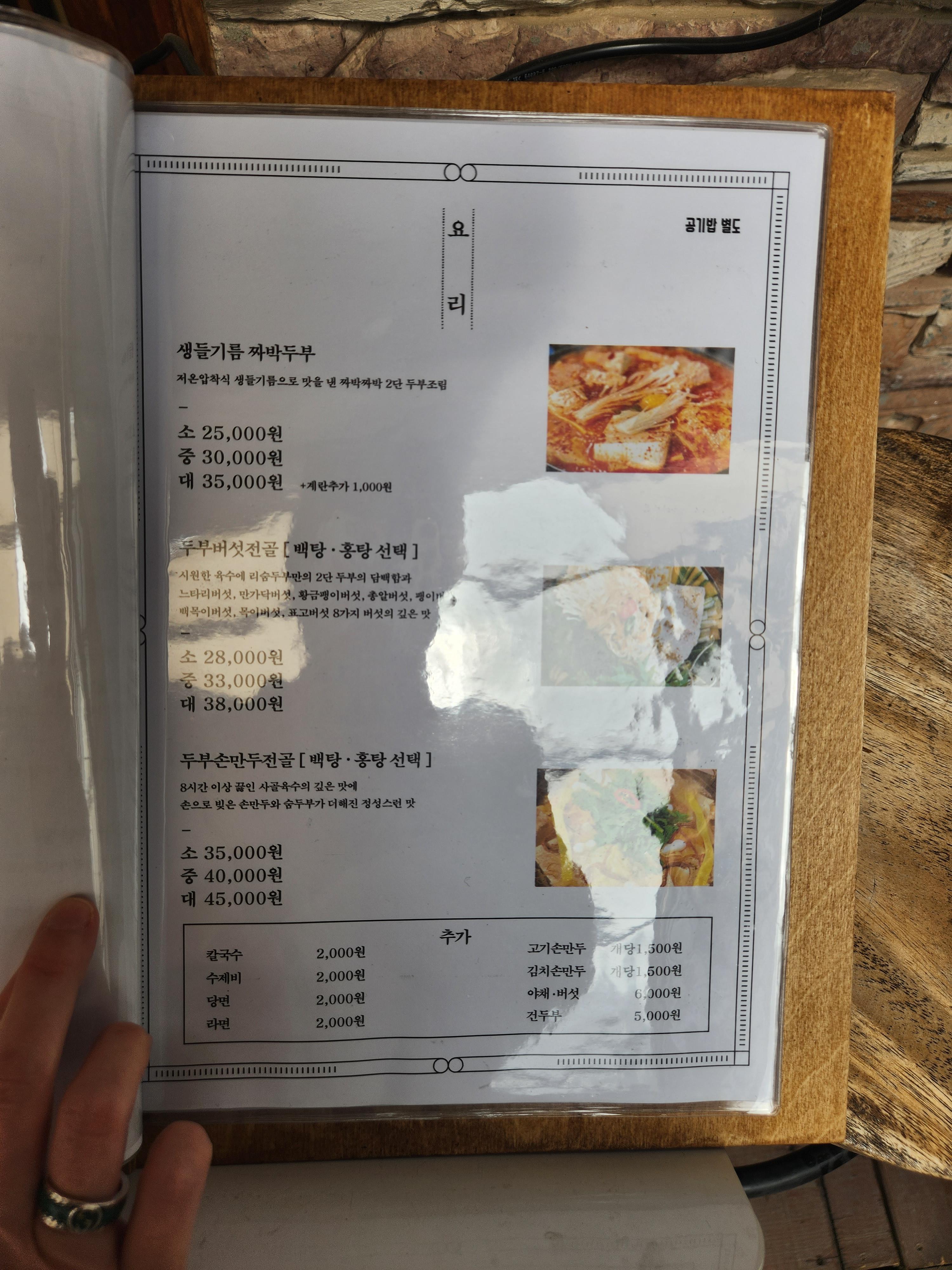 전골류는 생들기름 짜박 두부, 두부버섯전골,