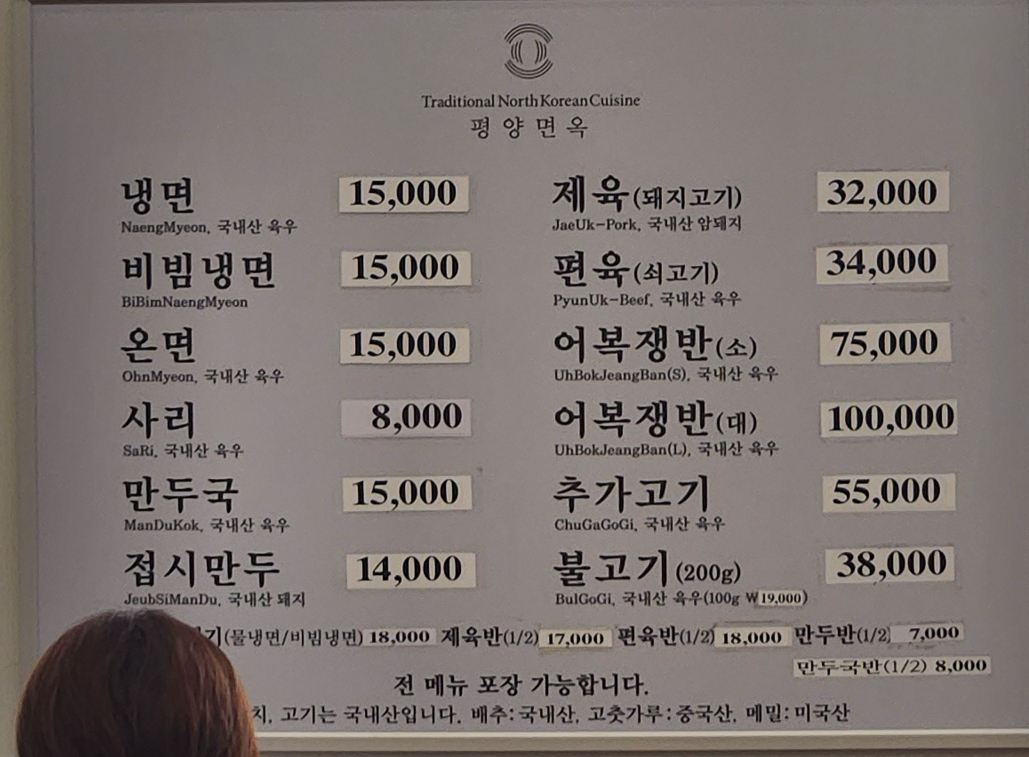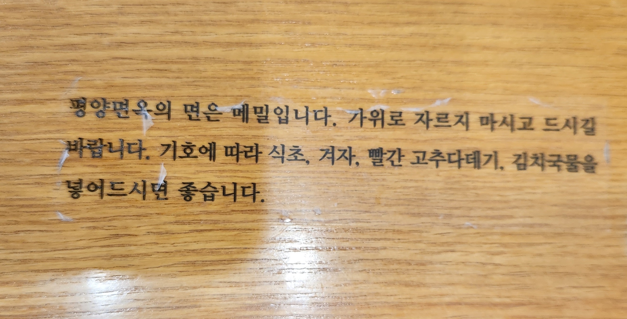 메뉴는 평양냉면, 비빔면, 만두, 어복쟁반,