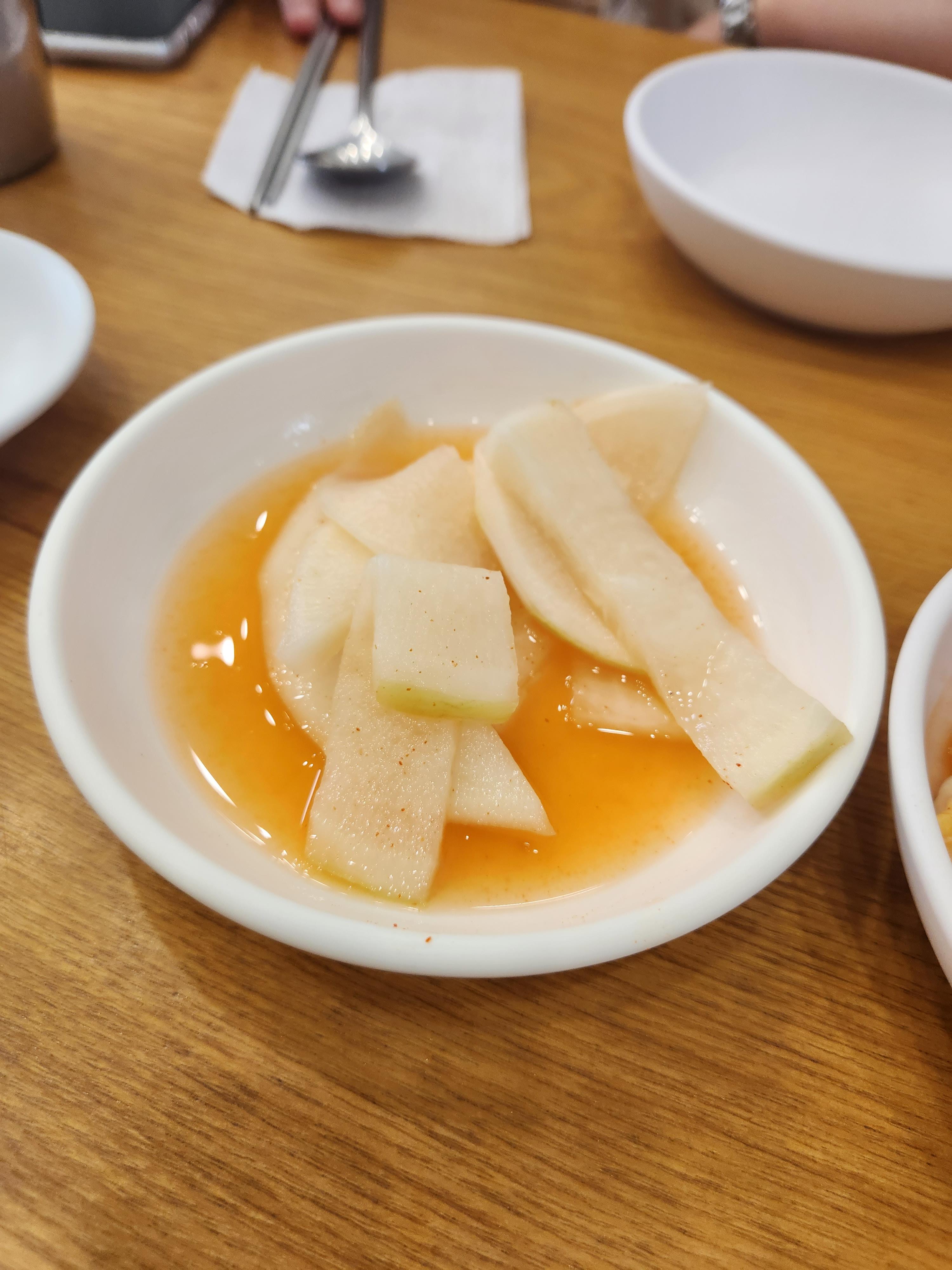 기본반찬으로 배추겉절이와 무절임이 나온다.