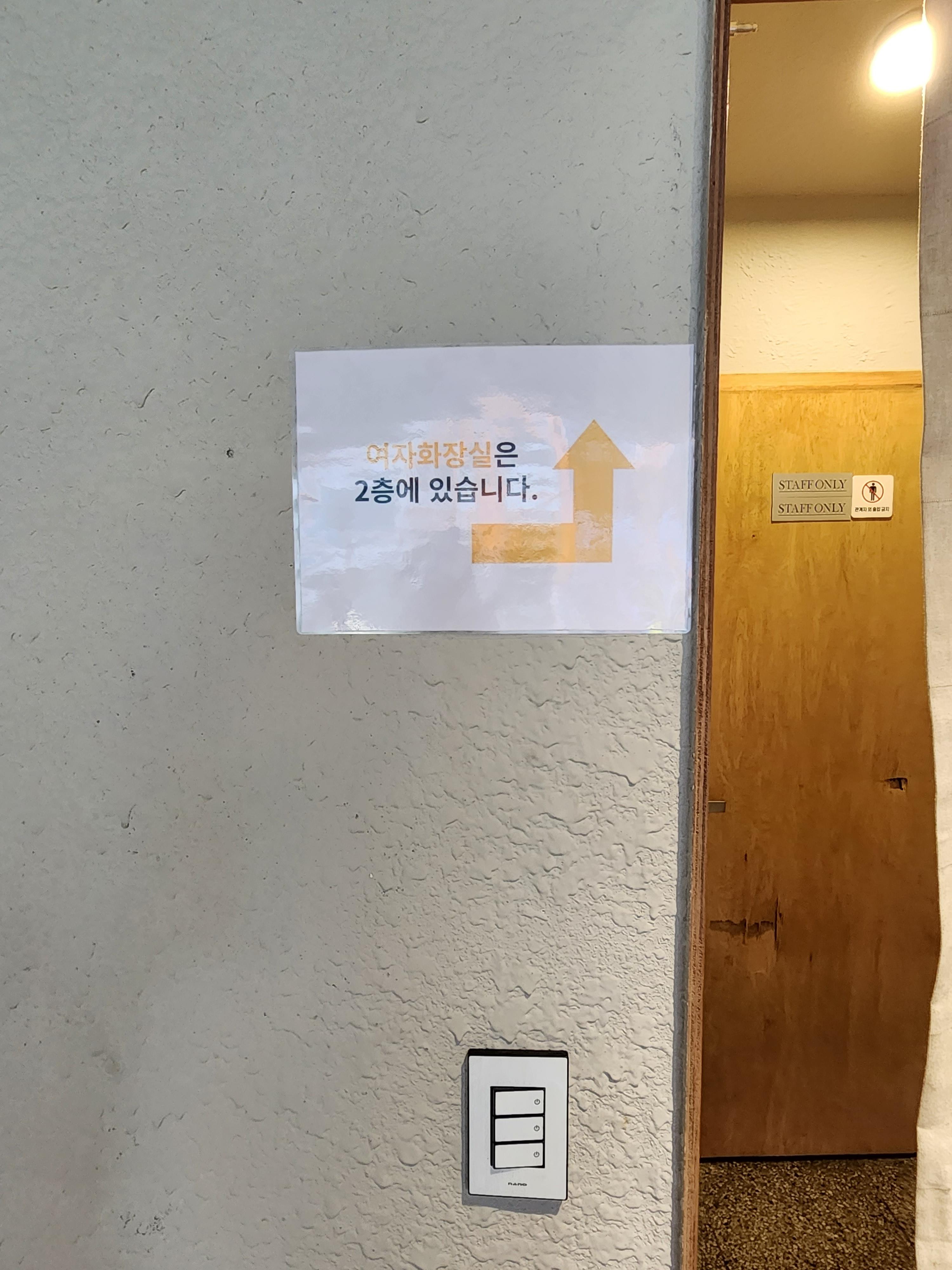 여자화장실은 1층, 남자화장실은 1층에 있다.