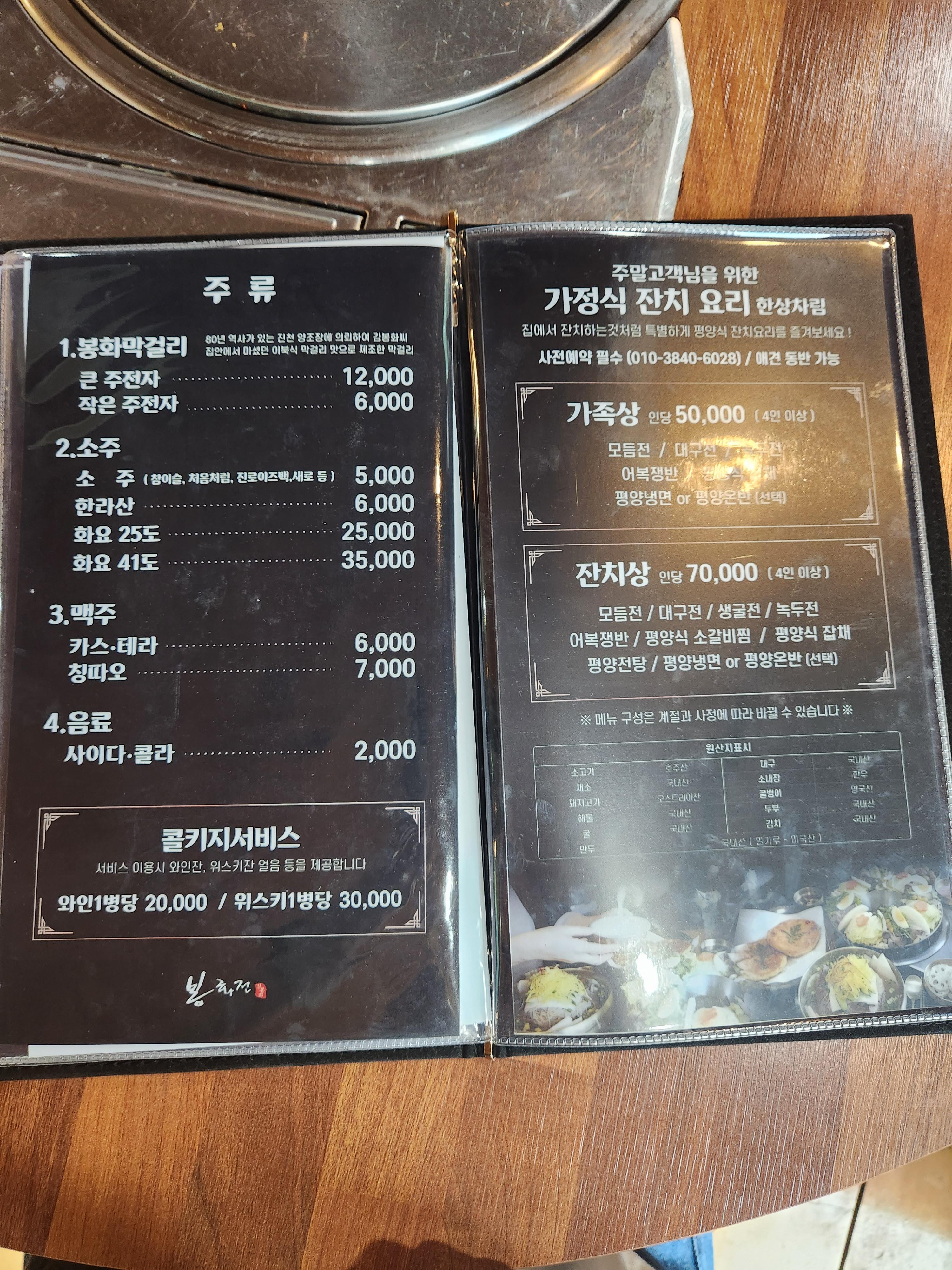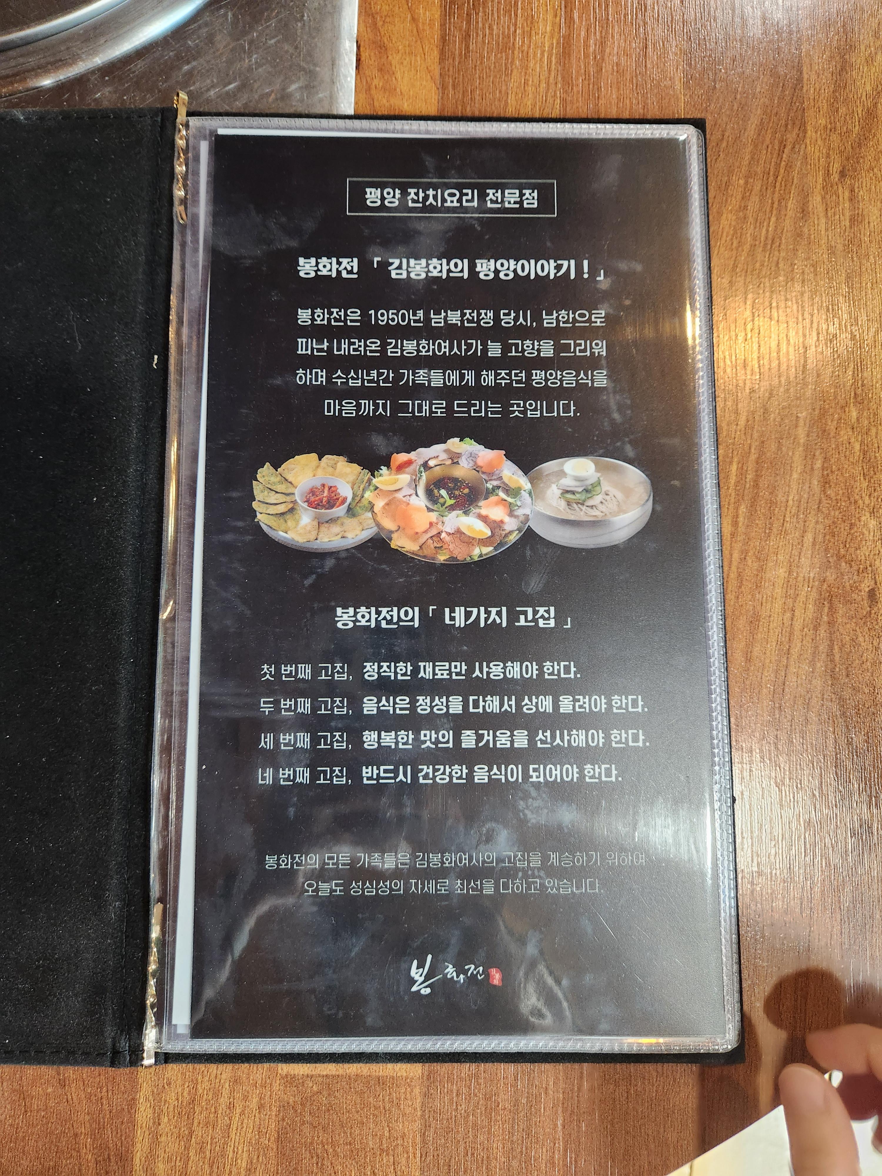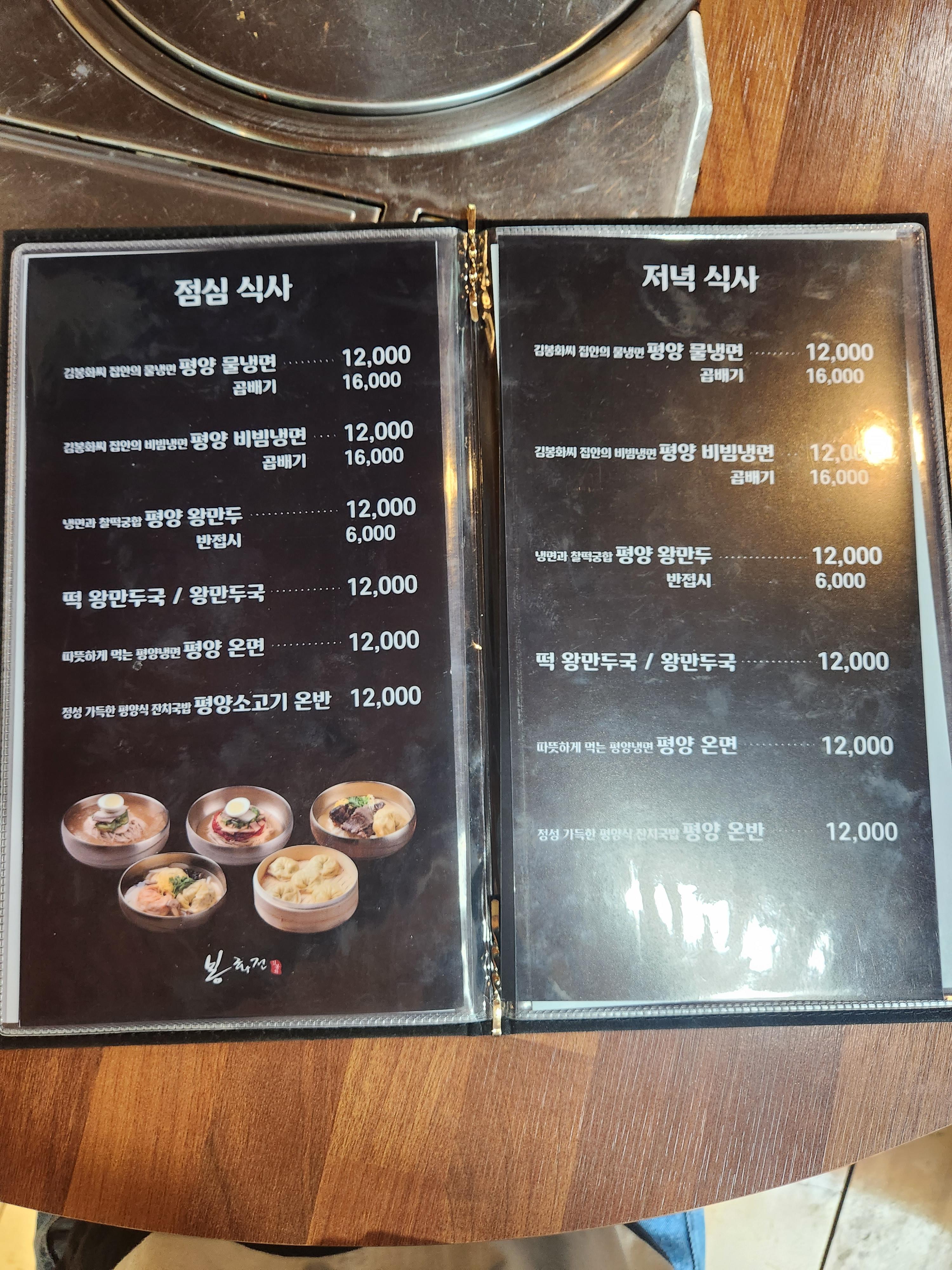 평양냉면, 만둣국, 평양온반, 주류가 판매한다.