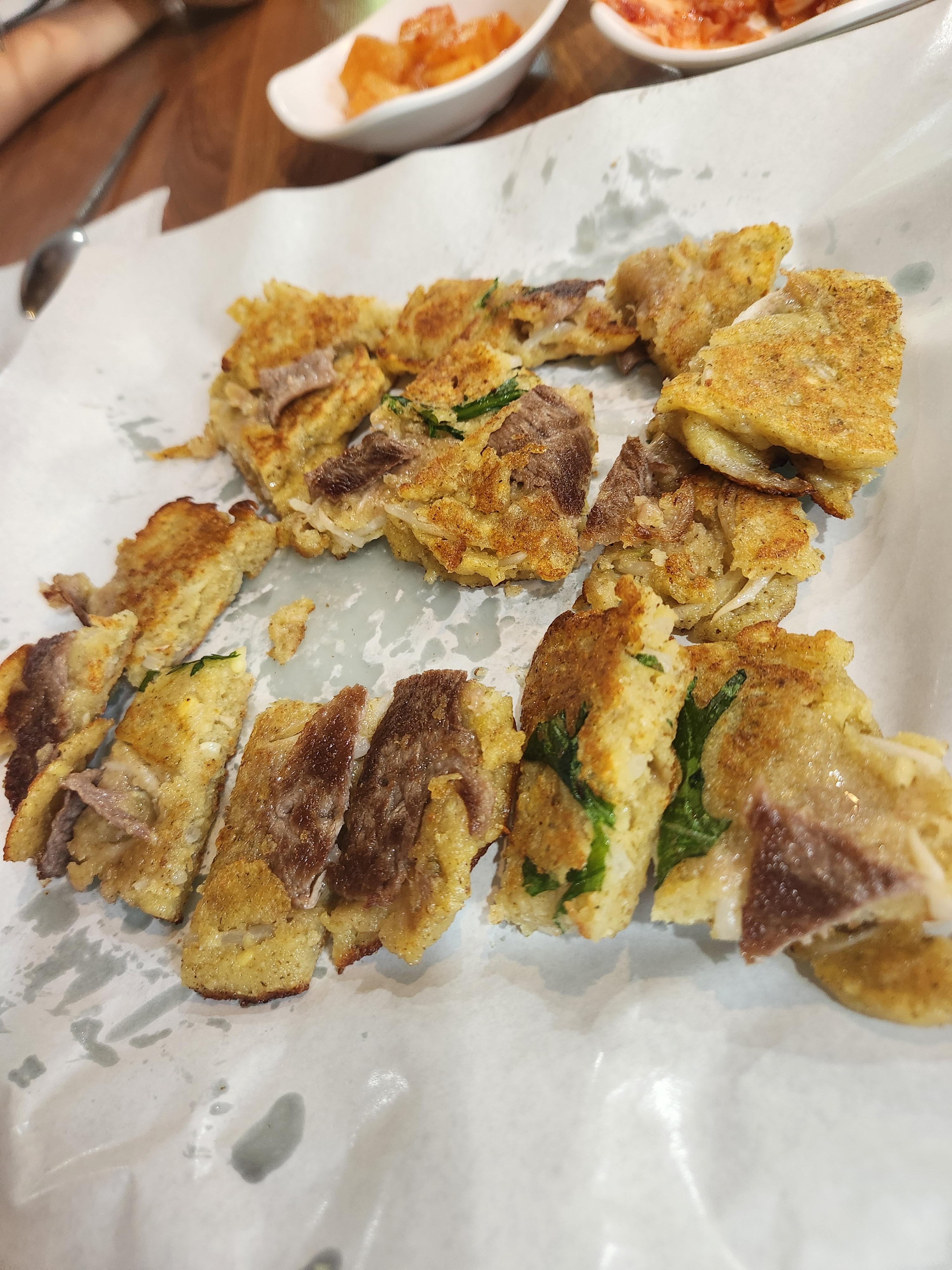 녹두빈대떡을 한 번에 먹을 수 있으며