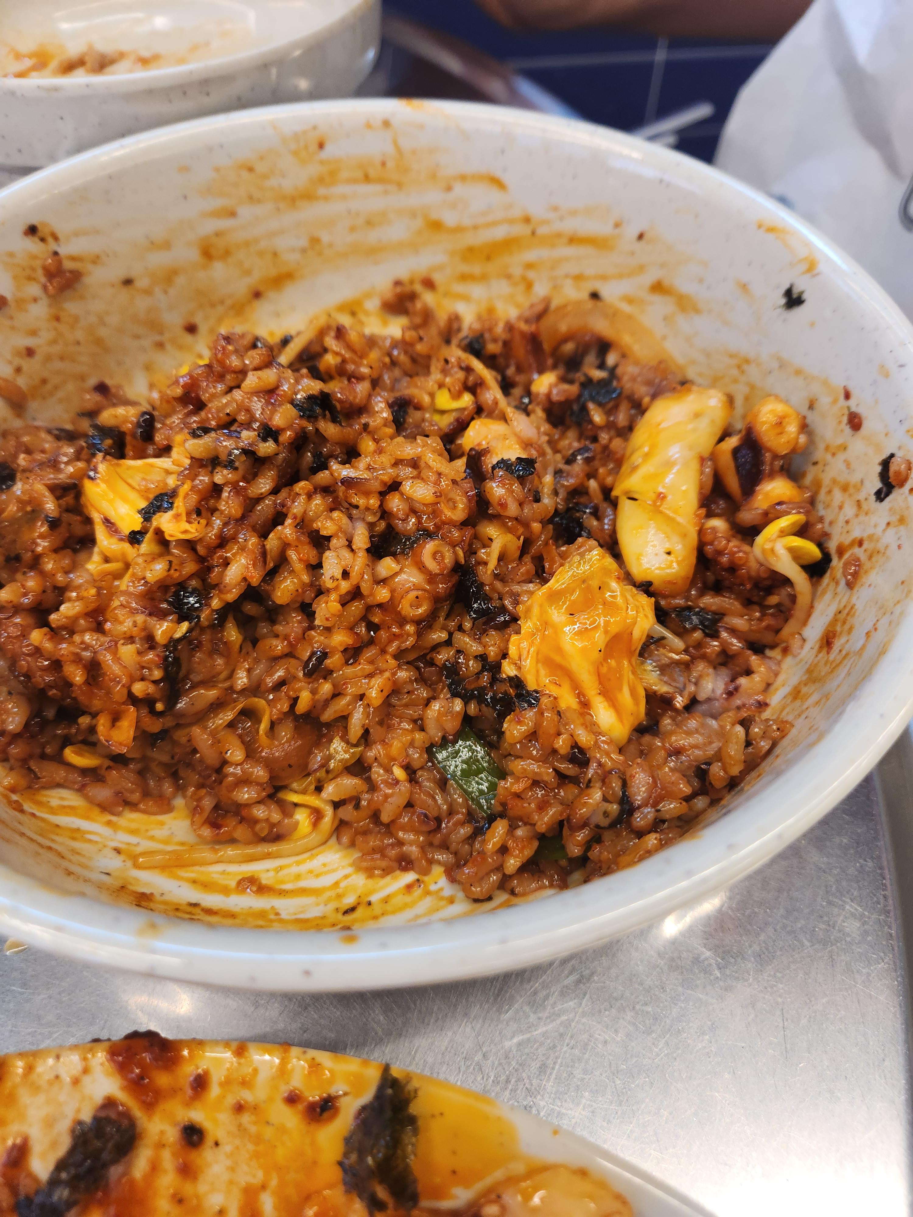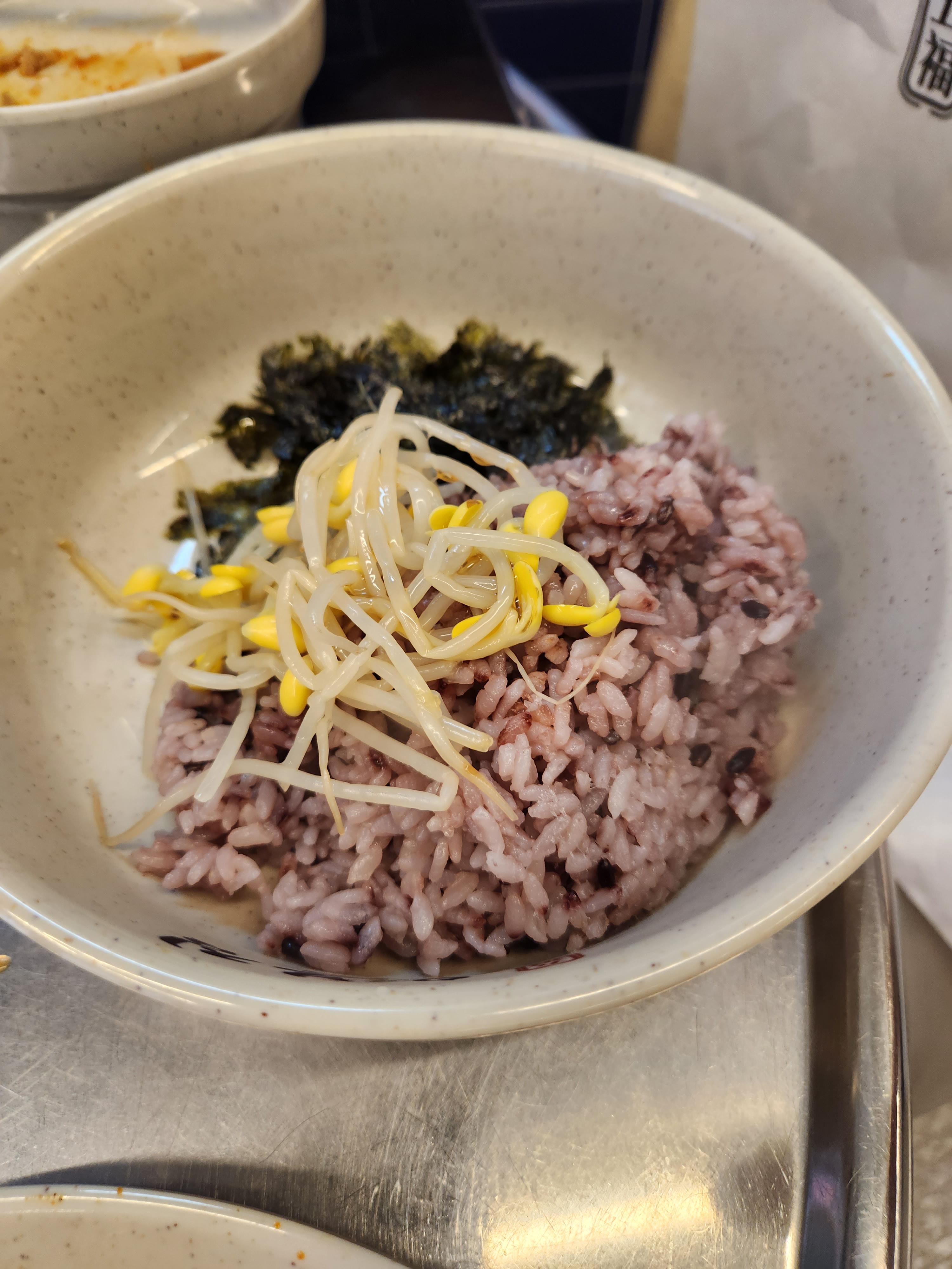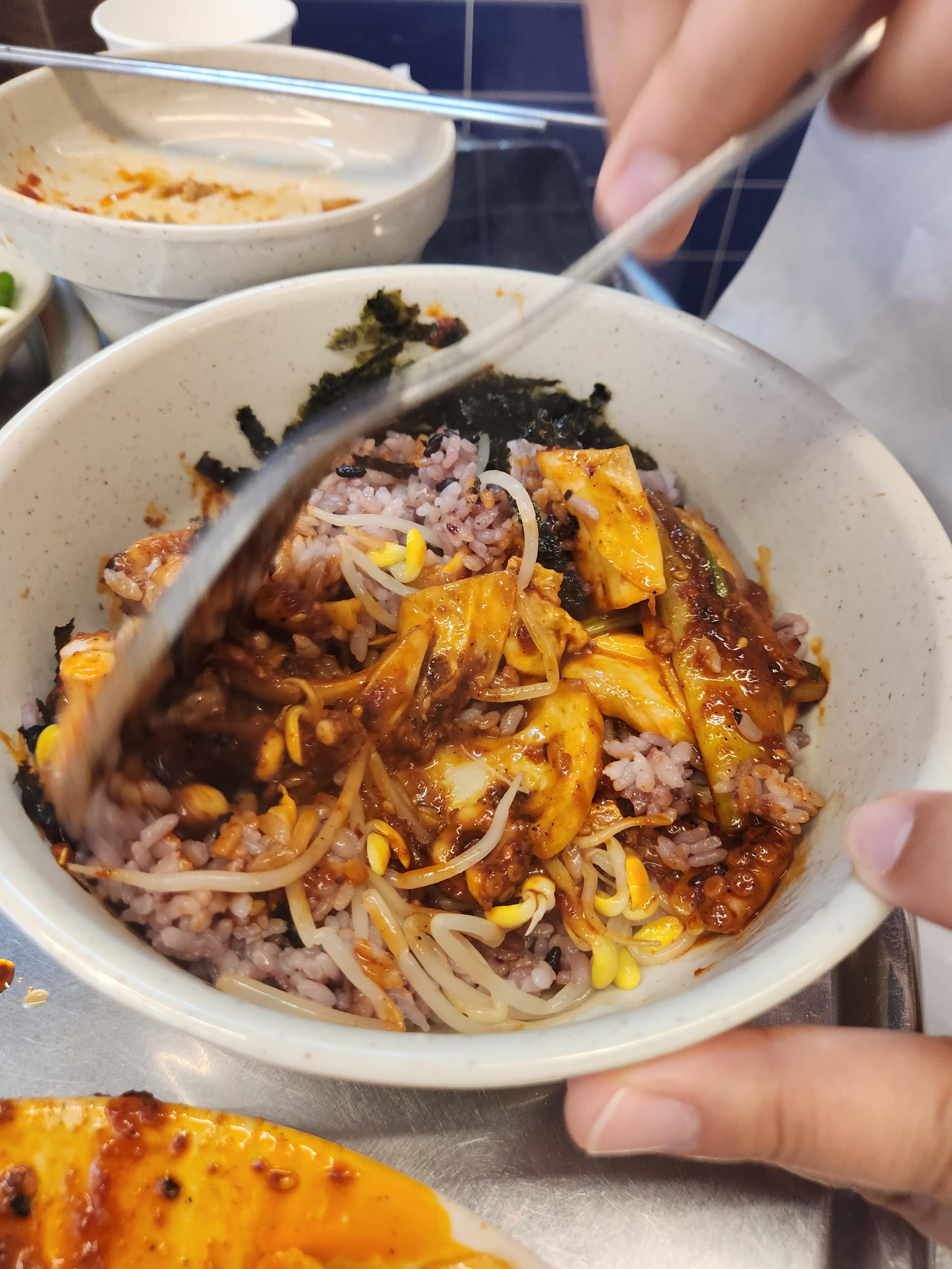 나중에는 밥, 콩나물, 김가루를 잔뜩 넣고