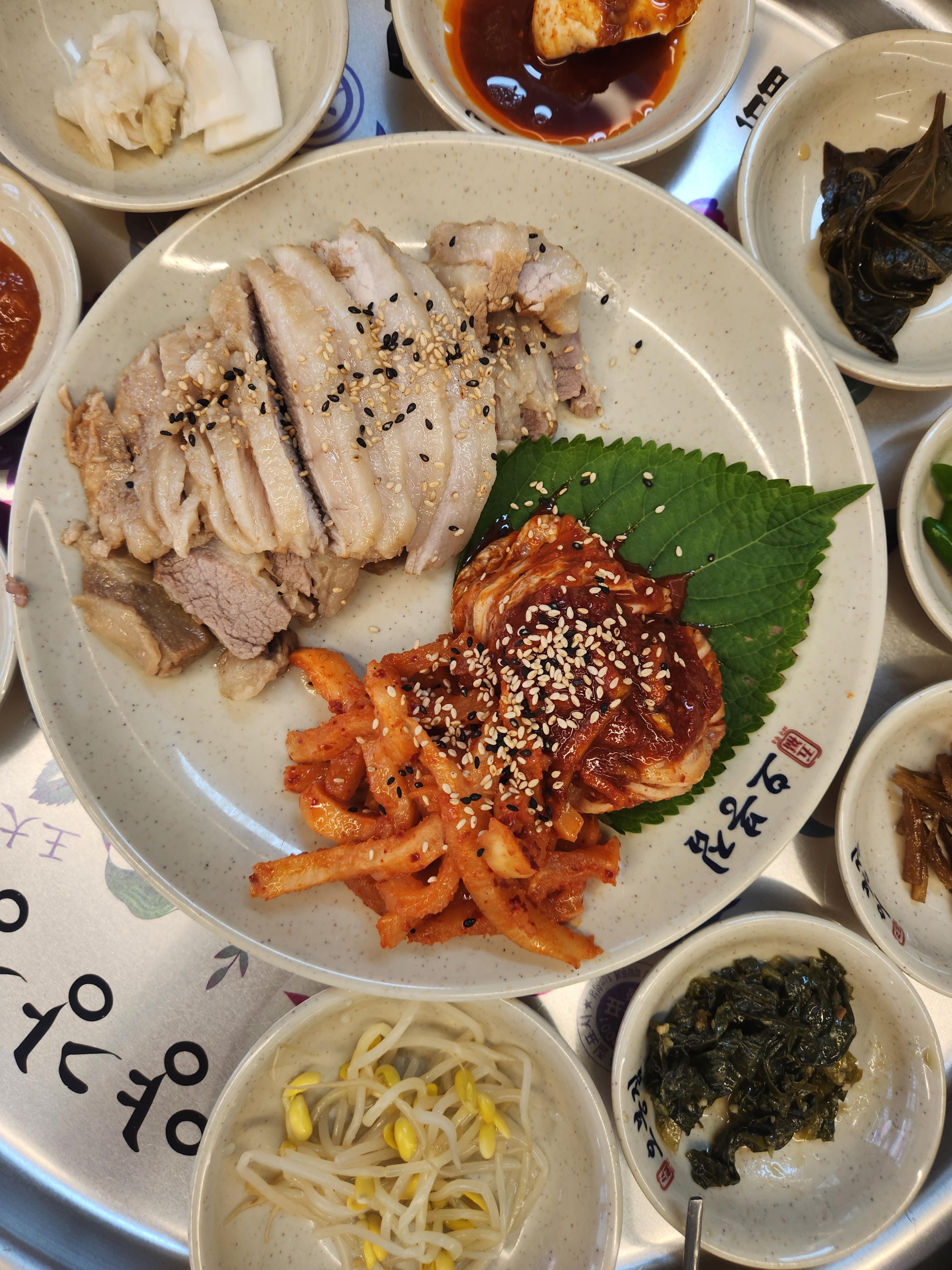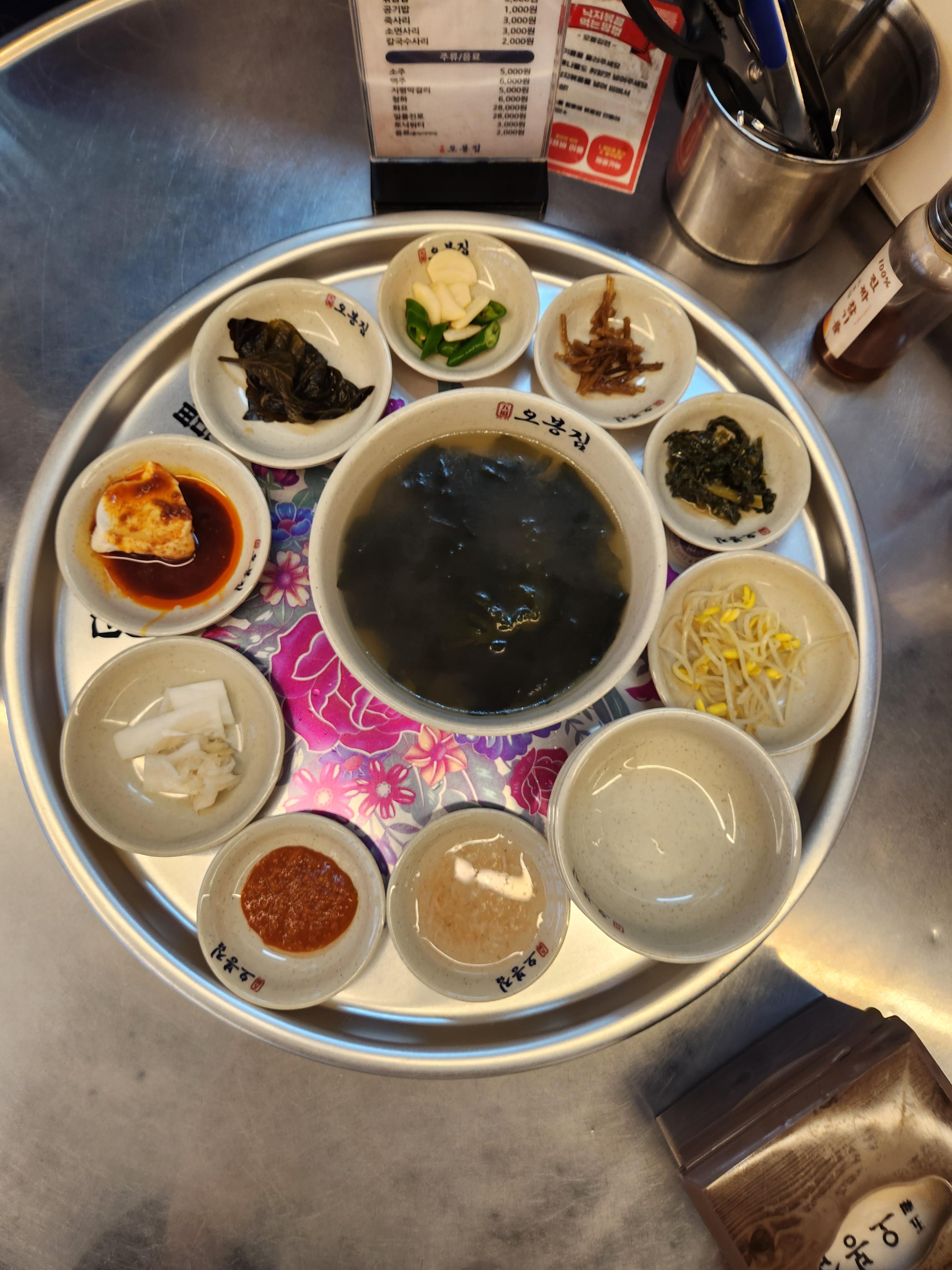 오봉쟁반에 기본찬들이 차려져 나왔다.