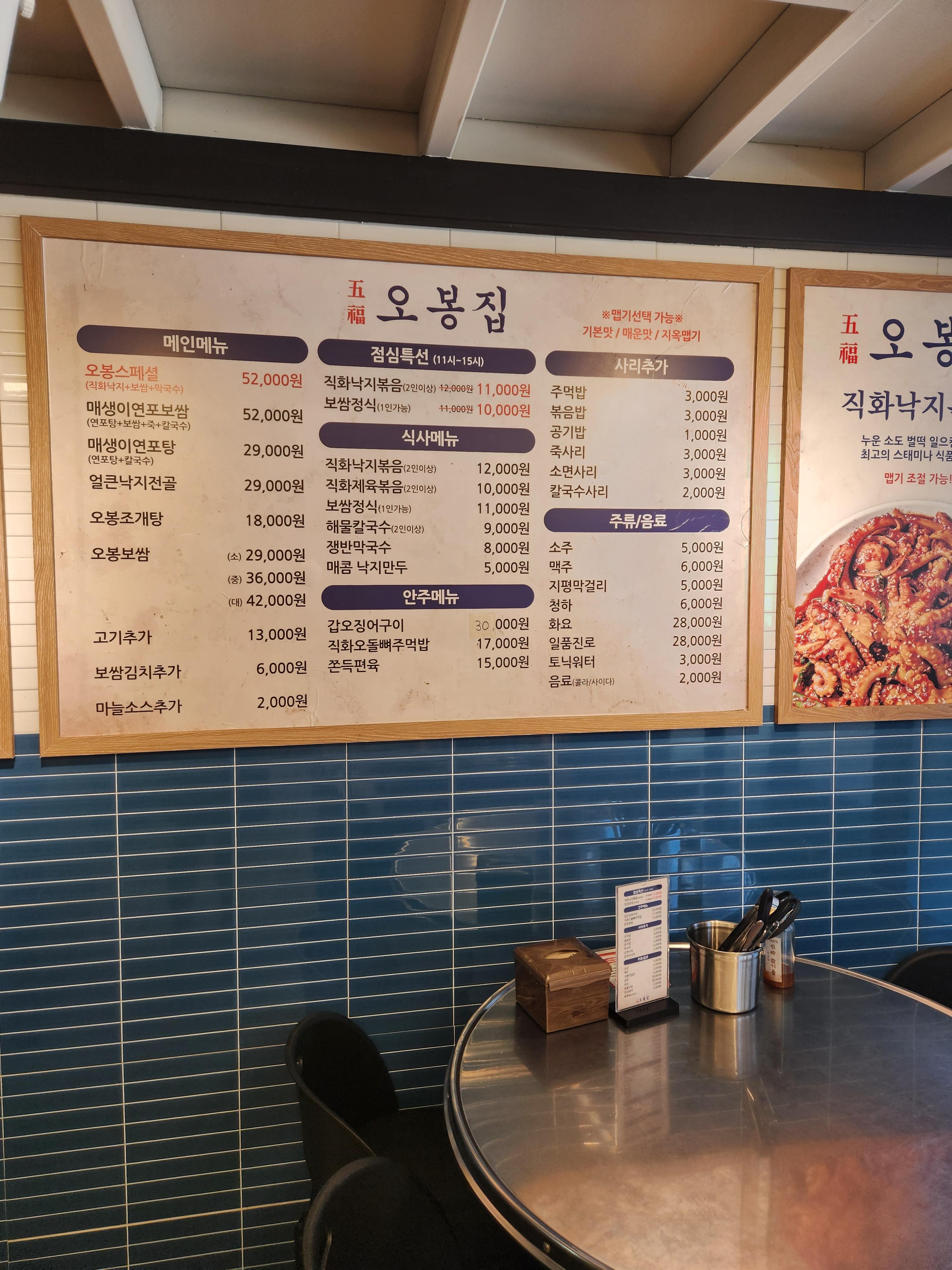 메뉴는 점심특선, 메인메뉴, 식사메뉴 등이