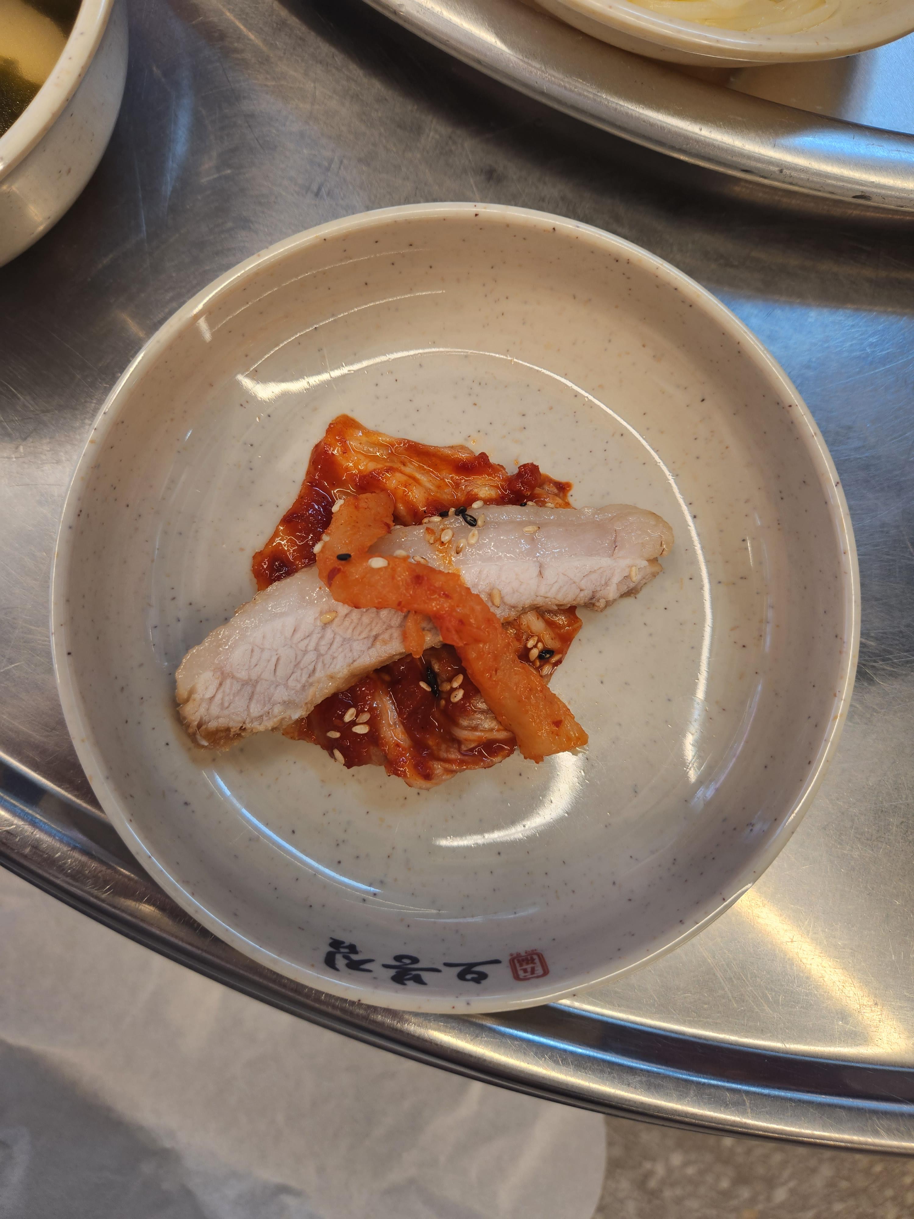 콩나물무침, 백김치, 미역국, 쌈장, 새우젓이