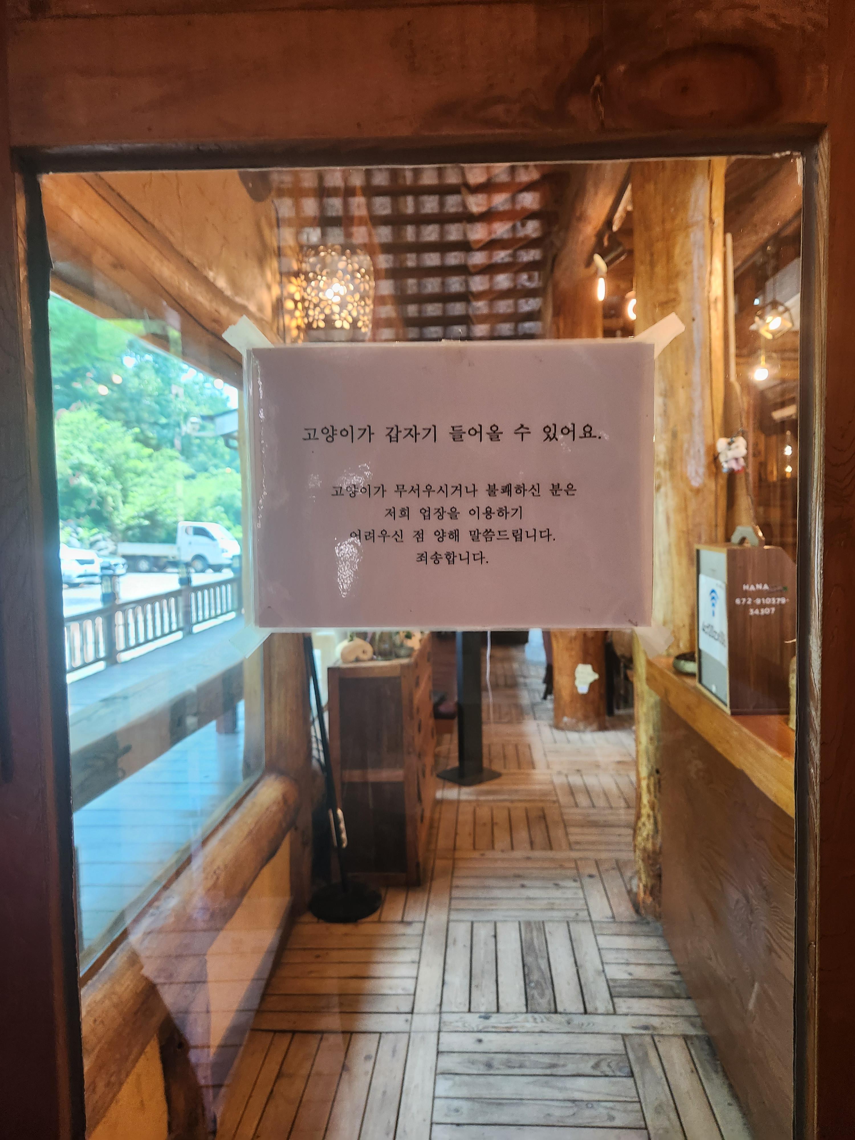 식당 주변 곳곳에 고양이 안내주의문구가