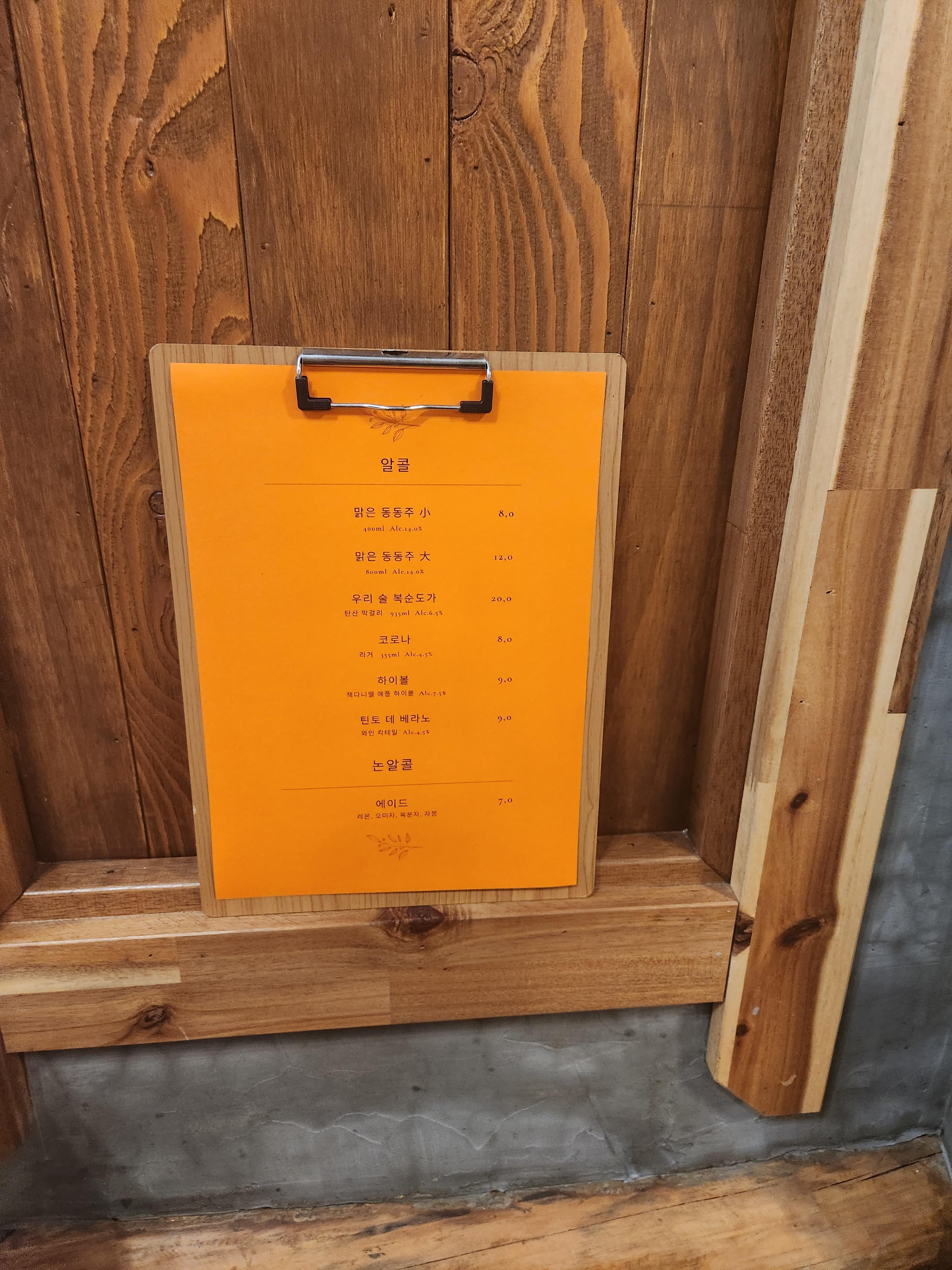 주류로는 동동주, 하이볼, 논알코올이 판매되고 있다.