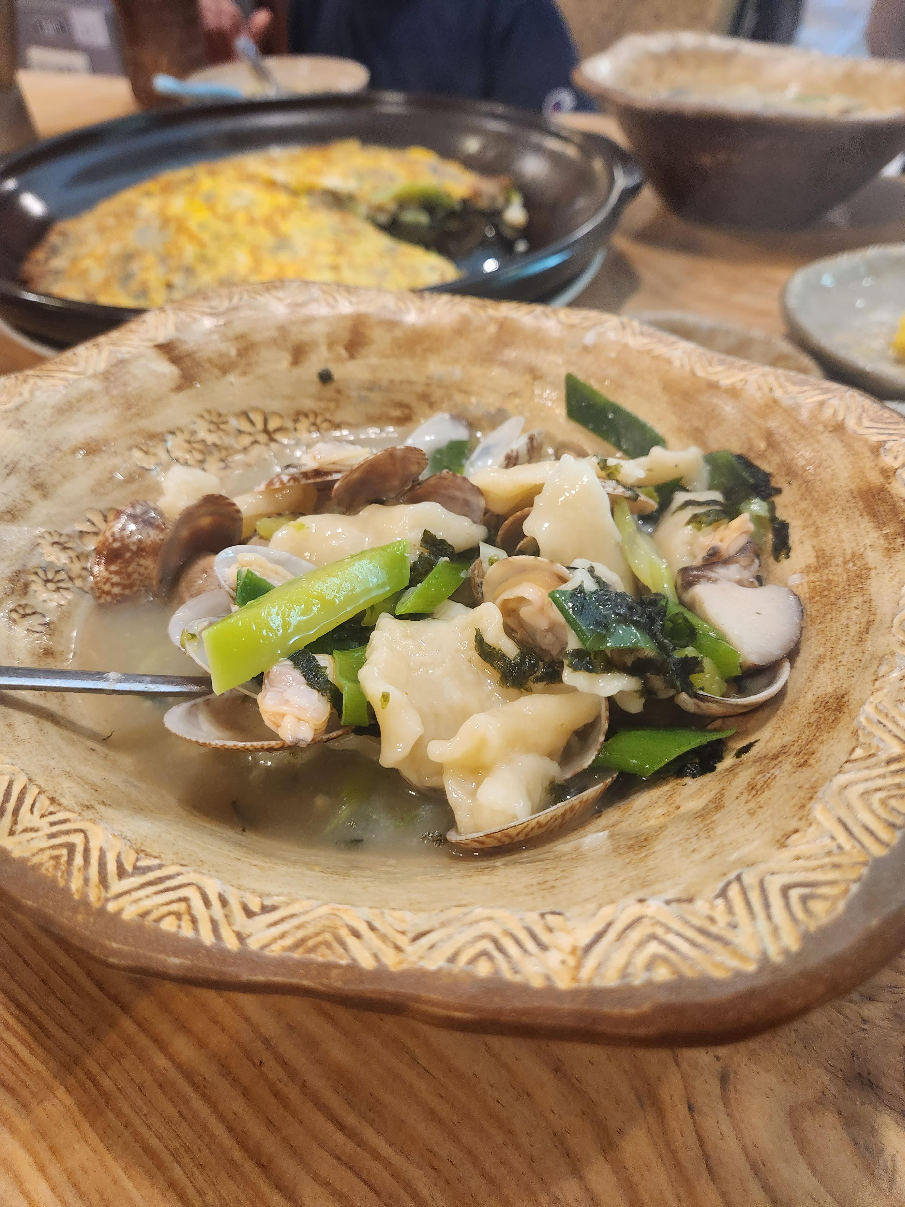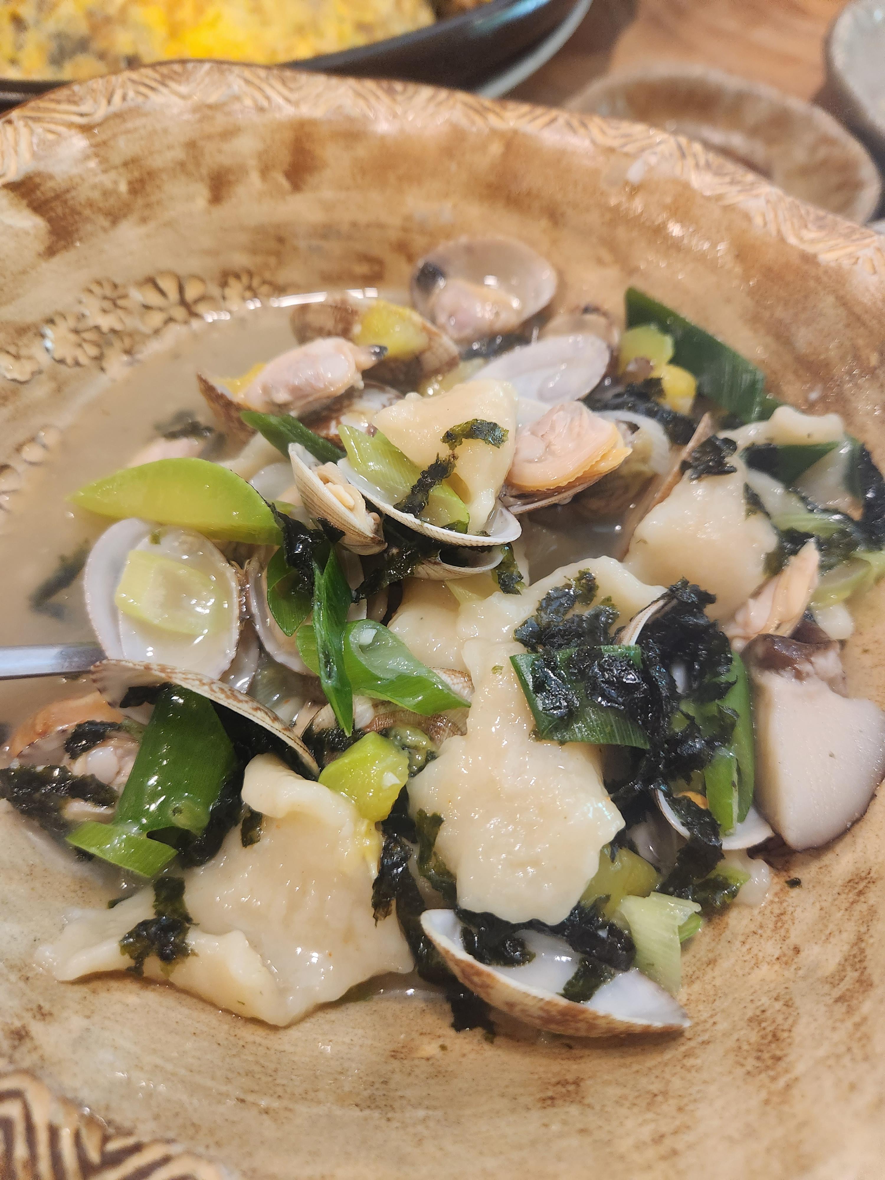 육수의 맛은 바지락향이 깊은 약간 칼칼한 맛이어서