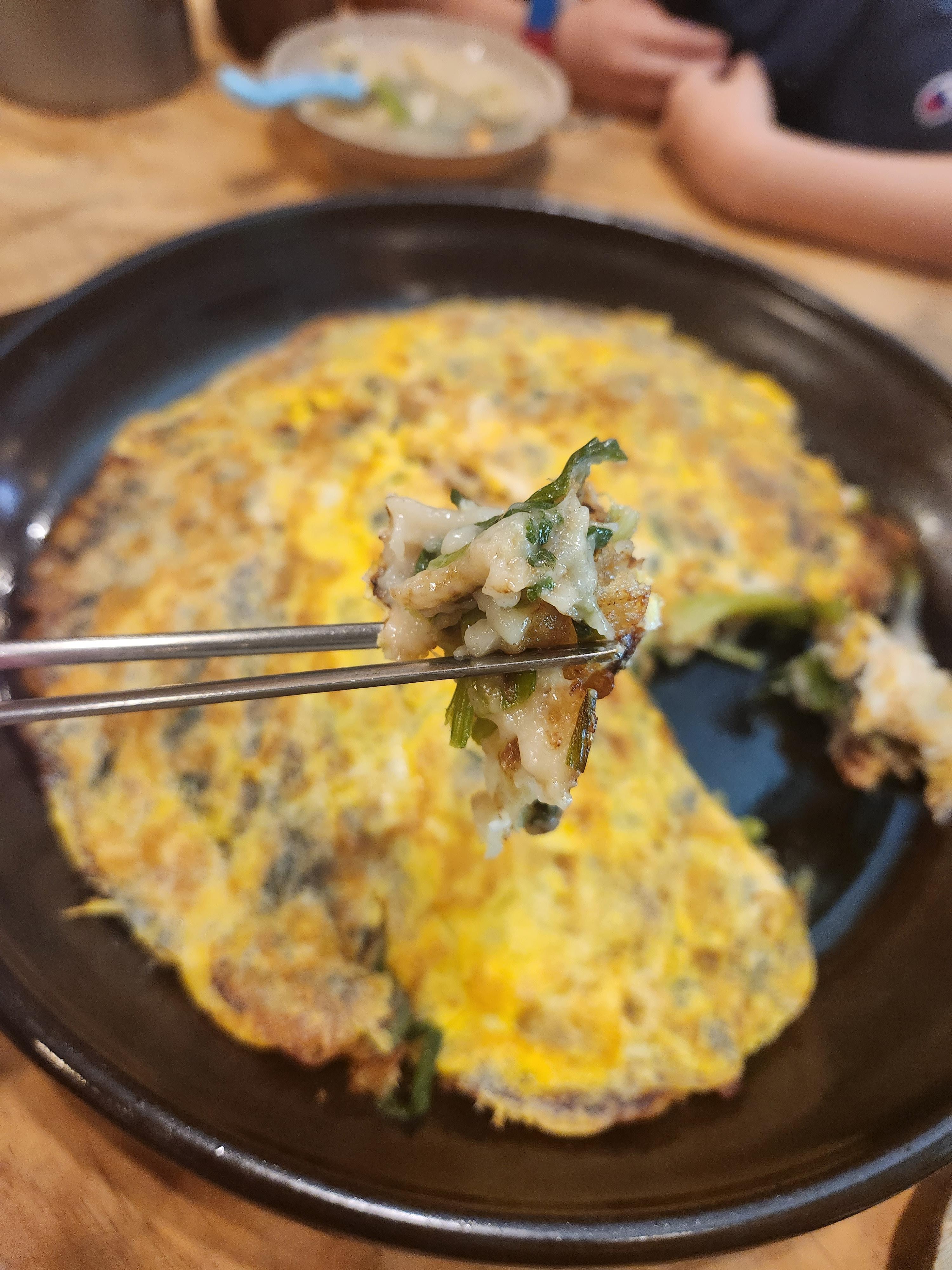 파전은 조금 겉은 바삭 안은 조금 질척? 촉촉? 한 부드러운 맛이며