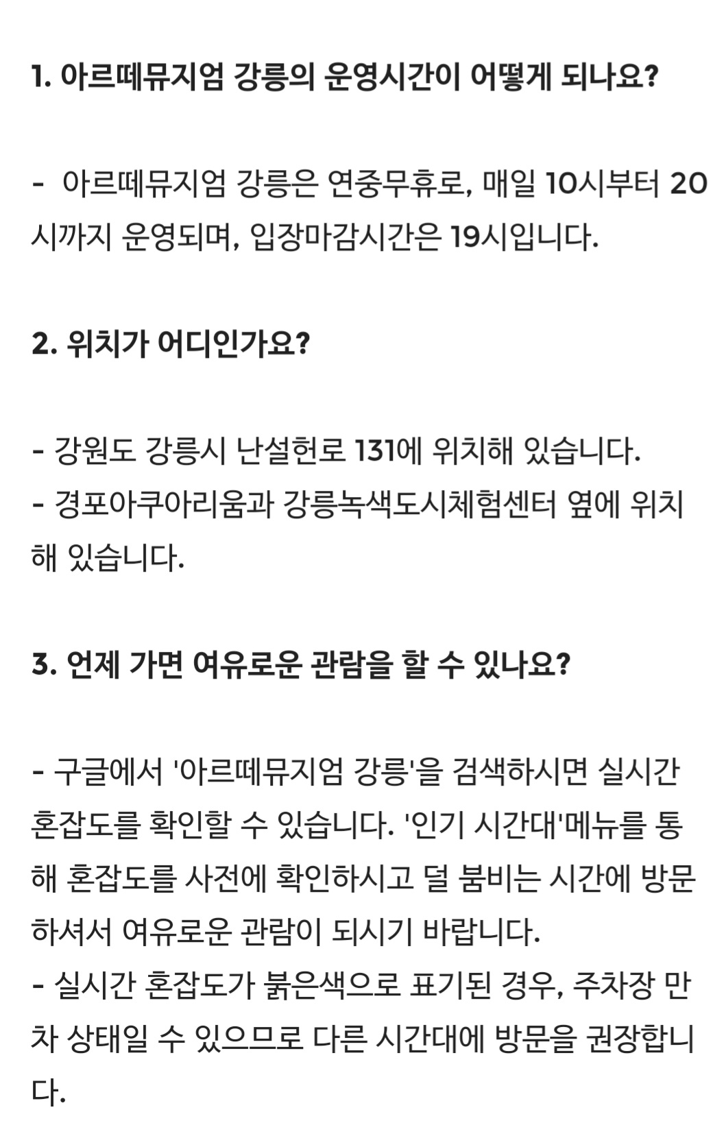 주소 : 강원도 강릉시 난설헌로 131 아르떼뮤지엄강릉