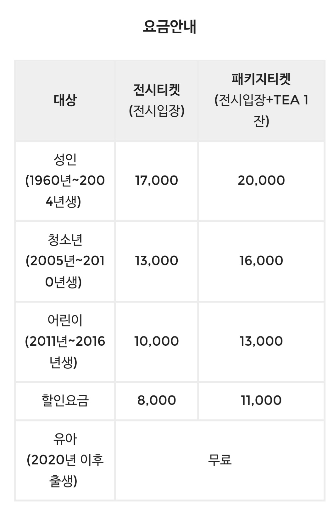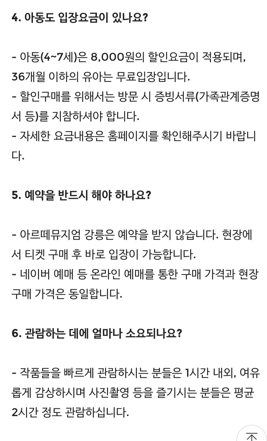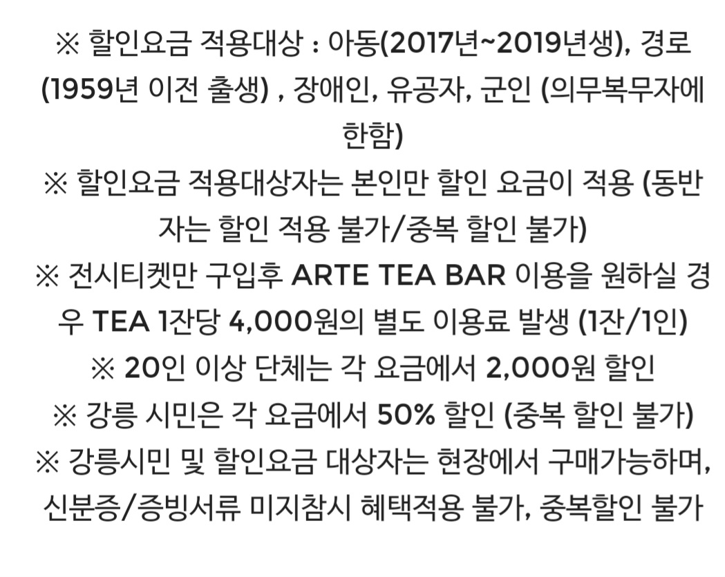 자세한 요금안내 및 자주 묻는 질문은 https://artemuseum.com/