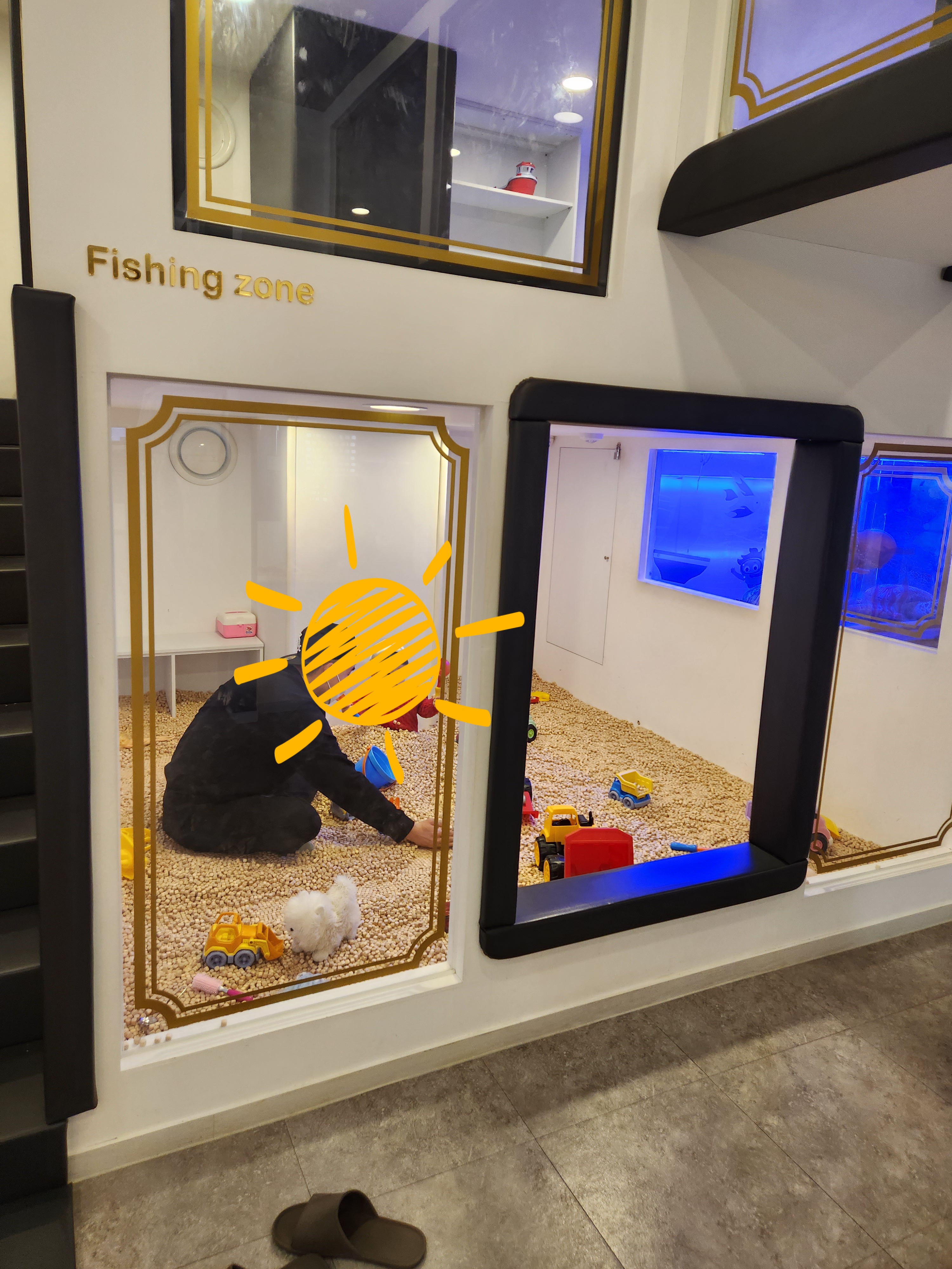 2층에는 물고기 잡기 놀이를 할 수 있는 공간이 있어